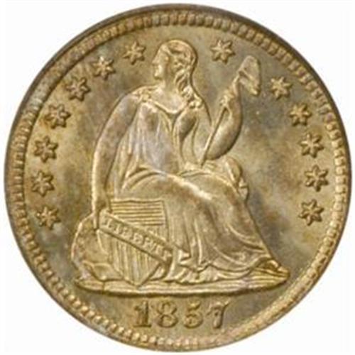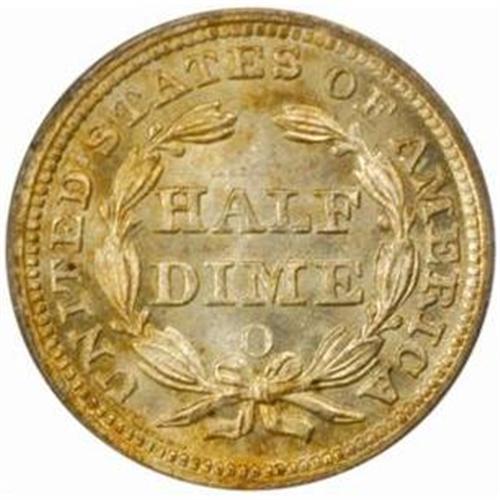 <style type="text/css"> body, td, th { font-family: Arial, Helvetica, sans-serif; font-size: 12px; color: #482424; margin: 0px; padding: 0px; } #header { background-image: url(http://www.bowersandmerena.com/ebay/images/template_v3_01.gif); clear: both; background-color: #590303; border-top-width: 2px; border-top-style: solid; border-top-color: #B38C4F;}#header #header_wrapper { height: 75px; clear: both; width: 800px; margin-right: auto; margin-left: auto; background-image: url(http://www.bowersandmerena.com/ebay/images/template_v3_03.gif); background-repeat: no-repeat; background-position: right; color: #F3EDCC;}#header #header_wrapper #header_logo { float: left; height: 75px; width: 444px; background-image: url(http://www.bowersandmerena.com/ebay/images/template_v3_02.gif); background-repeat: no-repeat; font-size: 10px; text-transform: capitalize; color: #B38C4F;}#header #header_wrapper #header_right { float: left; height: 75px; width: 356px; text-align: right;}#header #header_wrapper #header_right #headerLoginBtn { margin-bottom: 30px;}#header #header_wrapper #header_right input#txtSearch { color: #B49056; border: 1px solid #B49056; width: 175px; padding-top: 3px; padding-right: 3px; padding-bottom: 4px; padding-left: 3px;}#nav { height: 37px; background-image: url(http://www.bowersandmerena.com/ebay/images/template_v3_05.gif); clear: both;}#nav #nav_wrapper { height: 35px; width: 800px; margin-right: auto; margin-left: auto; border-left-width: 1px; border-left-style: solid; border-left-color: #B38C4F;}#nav #nav_wrapper a { padding-right: 15px; padding-left: 15px; border-right-width: 1px; border-right-style: solid; border-right-color: #B38C4F; height: 25px; padding-top: 10px; display: block; float: left; text-decoration: none; font-weight: bold; color: #5D0303;}#nav #nav_wrapper a:hover { color: #B38C4F;}#nav #nav_wrapper #search { float: right; padding-top: 7px;}#nav #nav_wrapper #search #txtSearch { font-family: Arial, Helvetica, sans-serif; font-size: 10px; text-transform: uppercase; color: #D2AE75; border: 1px solid #B38C4F; padding: 3px;}#content_bgd { background-image: url(http://www.bowersandmerena.com/ebay/images/template_v3_09.gif); background-repeat: repeat-y; background-position: center; padding-top: 15px; padding-bottom: 15px; background-color: #FBFBDB;}#content_wrapper { clear: both; height: auto; width: 800px; margin-right: auto; margin-left: auto;}.LotDetailWhite{ line-height:normal; font-size:13px; font-family: arial,helvetica,sans-serif; color: White; font-weight: bold;}.LotDetailInformation{ line-height:normal; font-size: 13px; font-family: arial,helvetica,sans-serif;}.LotDetailMessage{ line-height:normal; font-size: 13px; font-family: arial,helvetica,sans-serif; color: red;}}tr.HeaderAuctionTitle td { color: #000000; font-weight: bold; padding: 2px; background-image: url(http://www.bowersandmerena.com/ebay/images/template_v3_05.gif); background-repeat: repeat-x; border-bottom-width: 1px; border-bottom-style: solid; border-bottom-color: #B38C4F;}table.AuctionSummary a, table.AuctionSummary a:link, table.AuctionSummary a:visited { color: #0000FF; text-decoration: none;}}td.tableHeaderLeft { border-left-width: 1px; border-left-style: solid; border-left-color: #B38C4F;}td.tableHeaderRight { border-right-width: 1px; border-right-style: solid; border-right-color: #B38C4F;}td.tableCellMiddle { border-left-width: 1px; border-left-style: solid; border-left-color: #B38C4F; border-right-width: 1px; border-right-style: solid; border-right-color: #B38C4F; padding: 5px;}tr.footer td { border-top-width: 1px; border-top-style: solid; border-top-color: #B38C4F;}</style></head><body><div id="header"> <div id="header_wrapper"> <div id="header_logo"> </div> <div id="header_right"> </div> </div></div><div id="nav"> <div id="nav_wrapper"> <a href="http://www.bowersandmerena.com">Our eBayLive Auctions</a> <a href="#PaymentInfo">Payment Information</a> <a href="#ShippingInfo">Shipping Information</a> <a href="#About">About Bowers and Merena</a> </div></div><div id="content_bgd"> <div id="content_wrapper"> <table width="100%" border="0" cellpadding="5" cellspacing="0" class="AuctionSummary"> <tbody> <tr class="HeaderAuctionTitle" style="height: 25px;"> <td align="left" class="tableHeaderLeft" > </td> <td align="center" class="tableHeaderRight"> <span style="font-size: large;">Lot #429. 1857-O Seated Liberty Half Dime. MS-66 (PCGS). CAC.</span> </td> </tr> <tr> <td colspan="3" class="tableCellMiddle"> By the standards of the New Orleans Mint during the 1850s, the 1857-O is actually a high-mintage issue at 1.3 million coins produced. Circulated examples are certainly easy to obtain in today's market, and even lower-end Mint State coins can be had without undue difficulty. As a premium-quality Gem, however, the piece that we are offering here is in a completely different category. Breathtakingly beautiful, the surfaces are exceptionally well preserved and nearly pristine. Bright, satiny luster shimmers beneath an overlay of light, iridescent, champagne-orange toning. Sharp-to-full in strike--an uncommon attribute for an O-mint Seated coin from the mid-to-late 1850s--with nary a distracting abrasion to report. Lovely!