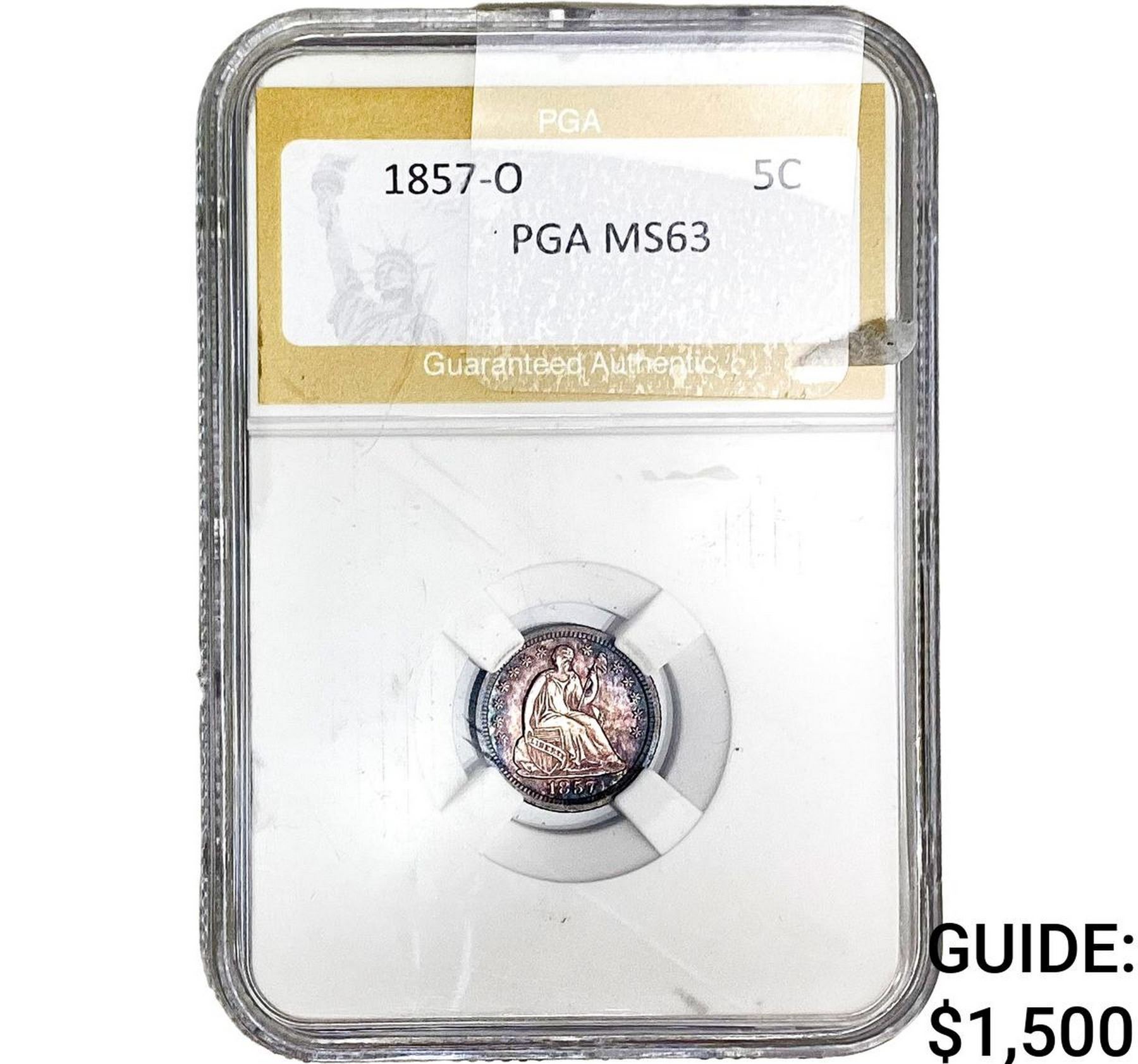 1857-O Seated Liberty Half Dime PGA MS63