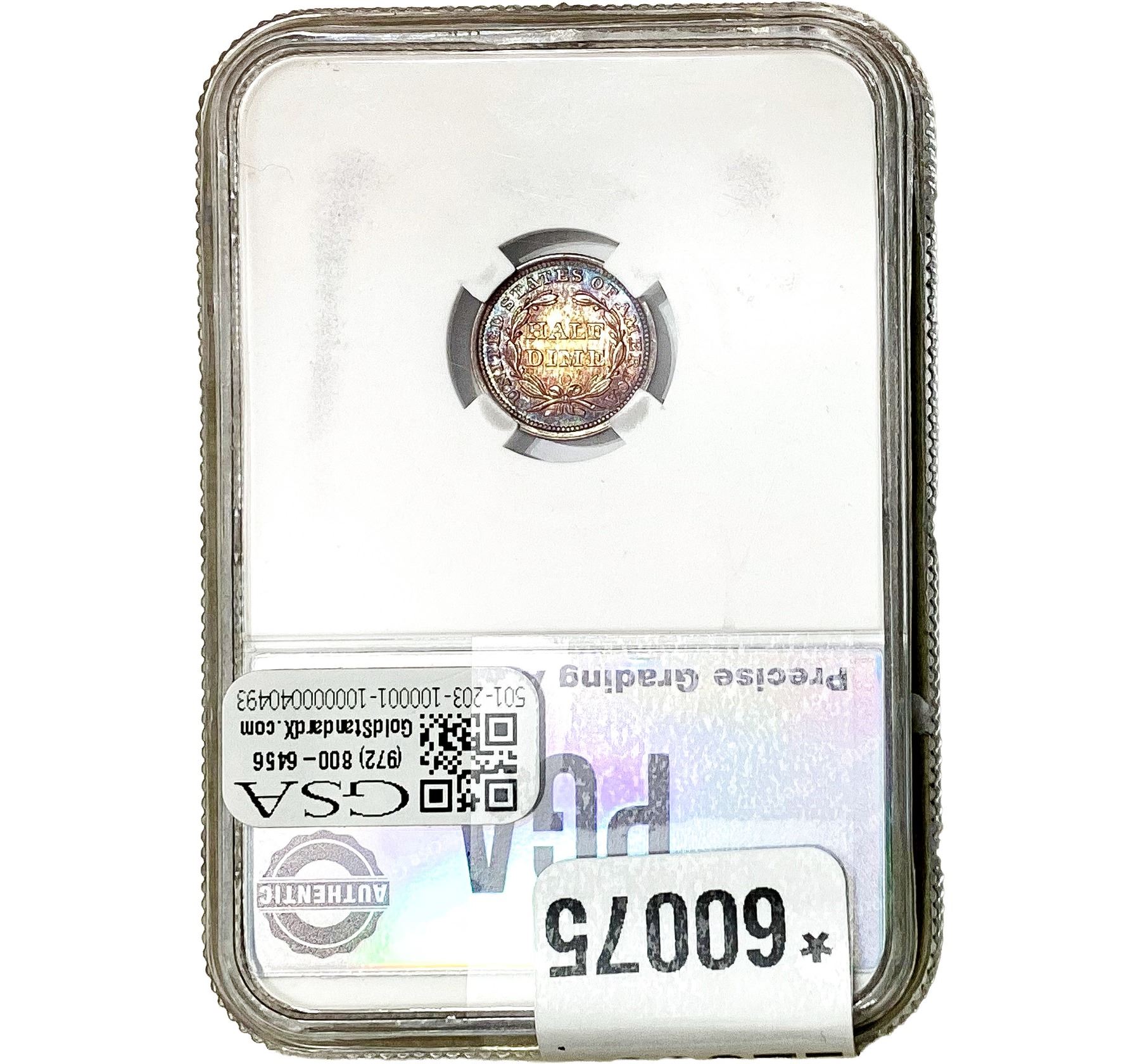 l. All non-certified coins and currency are guaranteed genuine, but are not guaranteed as to grade, since grading is a matter of opinion, an art and not a science, and therefore the description rendered by GSA or any third-party grading service may not agree with the opinion of others (including trained experts), and the same expert may not grade the same item with the same grade at two different times. GSA may, but is not obligated to, express an opinion as to non-certified numismatic items, in GSA’s opinion, or by its employees’ experience and the current interpretation of the American Numismatic Association’s standards as of the date the catalog was prepared. There is no guarantee or warranty expressed or implied that the grading opinions utilized by GSA, if any, will meet the standards of any grading service at any time in the future.