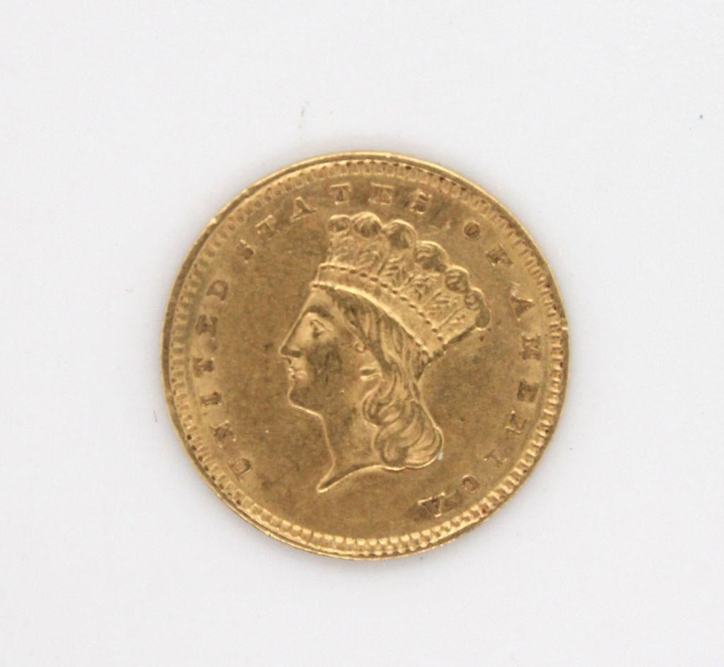 The mintage of this $1 gold piece in 1857 was only 20,891. This one has nice XF detail with some mint luster.