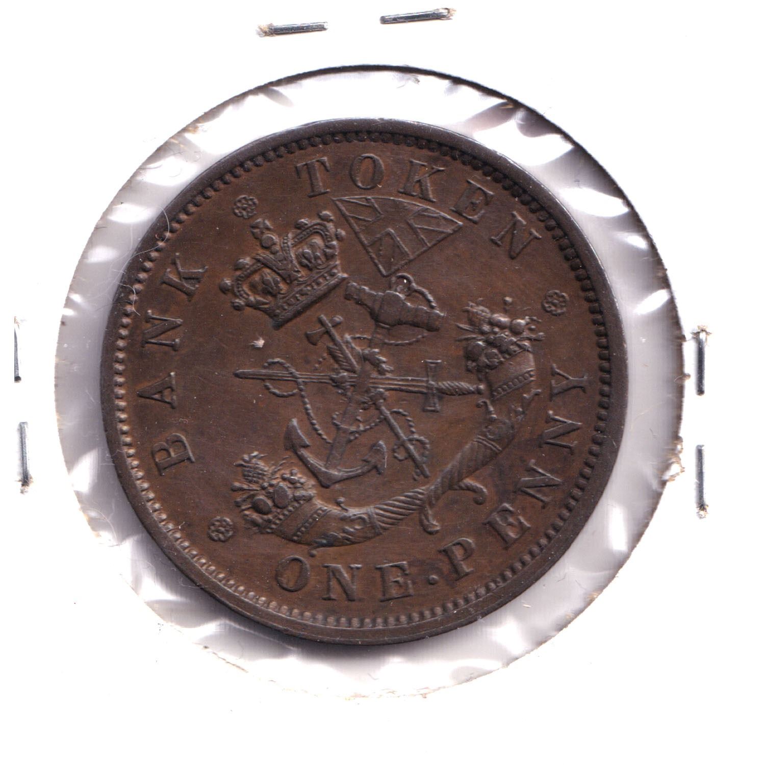 1857 PC-6D Bank of Upper Canada One Penny Token AU-UNC (scratched).
