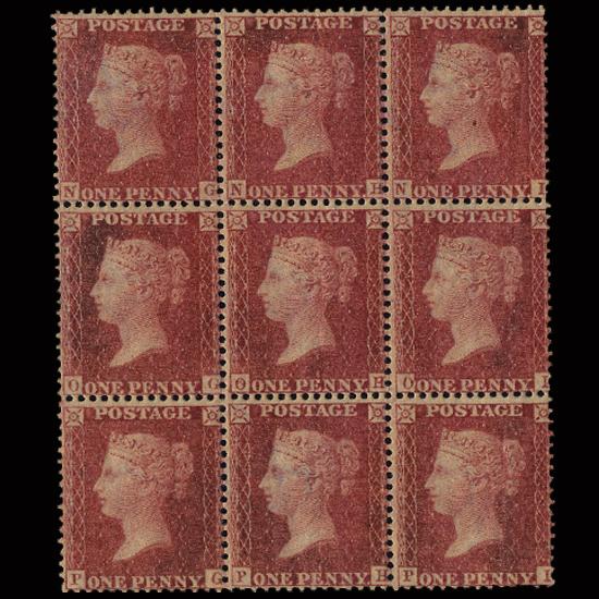 Super rare piece with original gum and light hingeing only on the top 3; cream colored paper; perf 14; Gibbons £8200