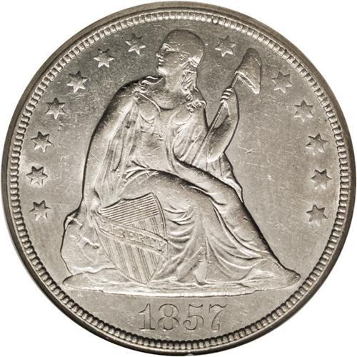 1857 S$1 AU55 NGC. Untoned with a subtle glint of refl 1857[img border='0' src='http://www.heritagec