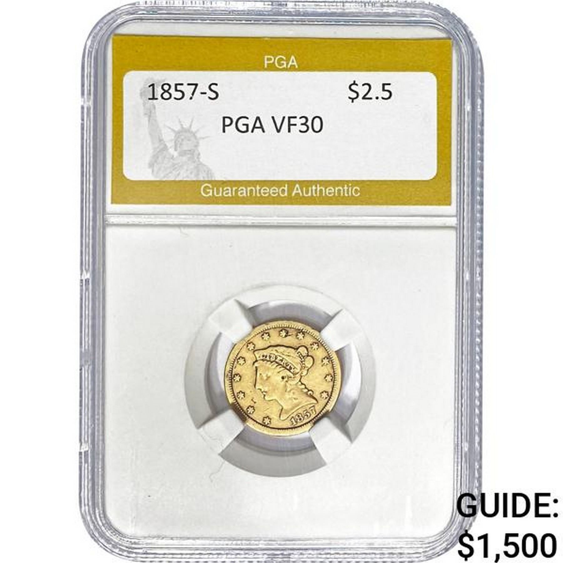 1857-S $2.5 Liberty Head PGA VF30