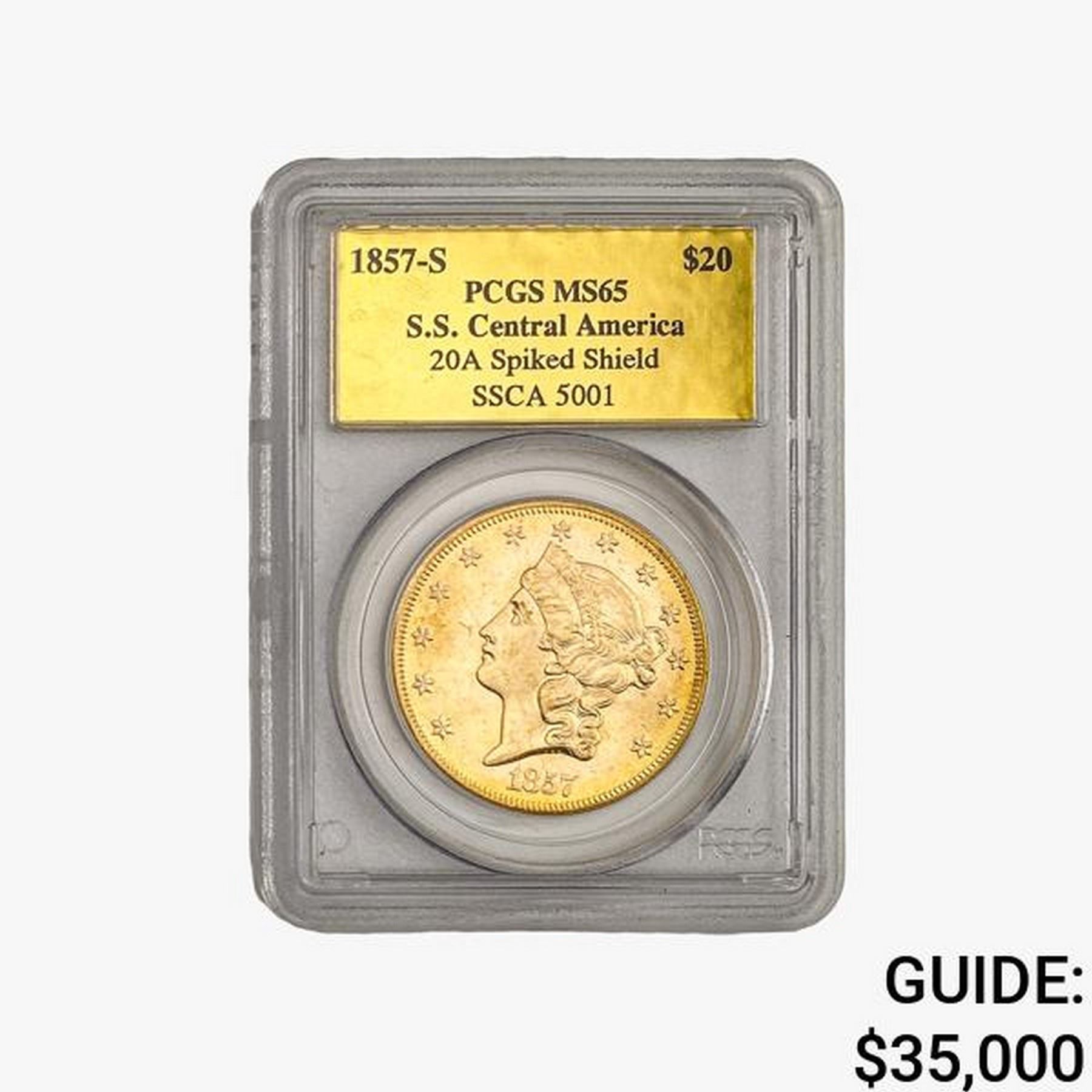 1857-S $20 Gold Double Eagle PCGS MS65 Shipwreck