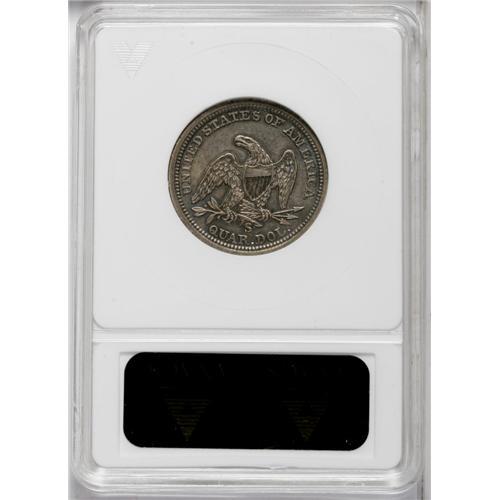 <B>1857-S<25C>--Cleaned--ANACS. AU58 Details.</B></I> Nicely detailed with a hint of friction on each side. The lightly hairlined surfaces are mostly retoned green-brown and plum.