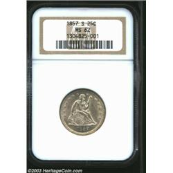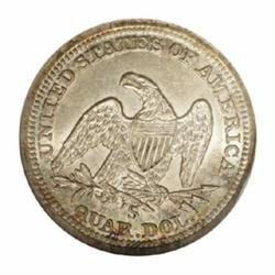 <TABLE cellSpacing=0 cellPadding=0 width="100%" bgColor=#000000 border=0><TBODY><TR><TD width="100%"><TABLE cellSpacing=1 cellPadding=3 width="100%" border=0><TBODY><TR><TD width="100%" bgColor=#79735c><FONT face=arial color=#ffffff size=3><B>Description</B> </FONT></TD></TR><TR><TD width="100%" bgColor=#ffffff><FONT face=arial size=2><B>1857-S 25C MS62 NGC.</B></I> With a mintage of only 82,000 pieces, one would expect a certain level of scarcity for this issue, and circulated pieces are a bit less obtainable than the previous two S-mint quarters. AU coins are quite difficult but can occasionally found with patience. Mint State pieces are quite elusive. Larry Briggs makes the comment that when Uncirculated pieces are located, they "usually have a light golden toning over very frosty surfaces." This piece fits that description as it possesses bright mint frost that is readily apparent even beneath the light layer of patina. Sharply struck in all areas and only minimally abraded. Population: 1 in 62, 6 finer (7/03). </FONT></TD></TR></TBODY></TABLE></TD></TR></TBODY></TABLE><BR><A name=PricesRealized></A><TABLE cellSpacing=0 cellPadding=0 width="100%" bgColor=#000000 border=0><TBODY><TR><TD width="100%"><TABLE cellSpacing=1 cellPadding=3 width="100%" border=0><TBODY><TR><TD width="100%" bgColor=#79735c><A name=PR><FONT face=arial color=#ffffff size=3><B>Previous Prices from Heritage Auctions</B> </FONT></A></TD></TR><TR><TD bgColor=#f6f6ed><TABLE cellSpacing=0 cellPadding=0 width="100%" border=1><TBODY><TR><TD align=middle width="33%"><B>Date</B></TD><TD align=middle width="33%"><B>Service</B></TD><TD align=middle width="33%"><B>Price</B></TD></TR><TR bgColor=whitesmoke><TD width="33%"><B>10/06/2000</B></TD><TD width="33%">ANACS</TD><TD width="33%">$3,105.00</TD></TR></TBODY></TABLE></TD></TR><TR><TD bgColor=#ffffff><FONT face=arial size=1 ?>PLEASE NOTE: All prices realized reflect the final hammer price PLUS the buyer's premium in auctions that charge a buyer's premium. Each item has a notation at the top of the listing indicating whether that lot included a buyer's premium. Example: A item that sells with a final hammer price of $100 and a 20% buyer's premium will display with a price realized of $120. All information listed is intended to be as accurate as possible, but errors are possible. Please use this guide carefully and inform us of any inaccuracies. </FONT></TD></TR></TBODY></TABLE></TD></TR></TBODY></TABLE><BR><TABLE cellSpacing=0 cellPadding=0 width="100%" bgColor=#000000 border=0><TBODY><TR><TD width="100%"><TABLE cellSpacing=1 cellPadding=3 width="100%" border=0><TBODY><TR><TD width="100%" bgColor=#79735c colSpan=6><FONT face=arial color=#ffffff size=3><B>Price Guide*</B> </FONT></TD></TR><TR bgColor=#f6f6ed><TD align=middle><B>Grade</B> </TD><TD align=middle><B>Coin World<BR>(Trends)</B> </TD><TD align=middle><B>Numismedia<BR>Retail</B> </TD><TD align=middle><B>Numismedia<BR>Wholesale</B> </TD><TD align=middle><B>Coin<BR>Universe</B> </TD><TD align=middle><B>Heritage<BR>Value Index</B> </TD></TR><TR bgColor=#ffffff><TD align=middle>61</TD><TD align=right>---</TD><TD align=right>---</TD><TD align=right>$2,950.00</TD><TD align=right>---</TD><TD align=right>$2,526.25</TD></TR><TR style="FONT-WEIGHT: bold" bgColor=#cccfdd><TD align=middle>62</TD><TD align=right>$4,250.00</TD><TD align=right>---</TD><TD align=right>$3,150.00</TD><TD align=right>---</TD><TD align=right>$3,250.00</TD></TR><TR bgColor=#ffffff><TD align=middle>63</TD><TD align=right>$6,500.00</TD><TD align=right>---</TD><TD align=right>$5,850.00</TD><TD align=right>---</TD><TD align=right>$4,525.00</TD></TR><TR bgColor=#ffffff><TD colSpan=6><FONT size=1>*All information listed is intended to be as accurate as possible, but errors are possible. No item may be returned or refused based on this information which is provided as a service to our customers. You should contact each pricing source directly to determine the accuracy of this information. </FONT></TD></TR></TBODY></TABLE></TD></TR></TBODY></TABLE><BR><TABLE cellSpacing=0 cellPadding=0 width="100%" bgColor=#000000 border=0><TBODY><TR><TD width="100%"><TABLE cellSpacing=1 cellPadding=3 width="100%" border=0><TBODY><TR><TD width="100%" bgColor=#79735c><FONT face=arial color=#ffffff size=3><B>Population Guide</B> </FONT></TD></TR><TR bgColor=#ffffff><TD align=middle><!-- Begin Output of Population Grid--><TABLE cellSpacing=0 cellPadding=0 width="100%" border=0><TBODY><TR><TD vAlign=center><TABLE cellSpacing=0 width="100%" border=1 cellsadding="3"><TBODY><TR><TD vAlign=center><TABLE cellSpacing=0 cellPadding=3 width="100%" border=1><TBODY><TR><TD vAlign=center align=middle bgColor=#f0f1e8 colSpan=2 <CENTER><FONT face=Arial size=2><B>PCGS Pop </B></FONT><CENTER></CENTER></TD><TD vAlign=center align=middle bgColor=#f0f1e8 colSpan=2><CENTER><FONT face=Arial size=2><B>NGC Pop</B></CENTER></FONT></TD></TR><TR><TD vAlign=center><FONT face=Arial size=2>(62)</FONT> </TD><TD vAlign=center align=right><FONT face=Arial size=2>0</FONT> </TD><TD vAlign=center><FONT face=Arial size=2>(62)</FONT> </TD><TD vAlign=center align=right><FONT face=Arial size=2>1</FONT> </TD></TR><TR><TD vAlign=center><FONT face=Arial size=2>(>62)</FONT> </TD><TD vAlign=center align=right><FONT face=Arial size=2>4</FONT> </TD><TD vAlign=center><FONT face=Arial size=2>(>62)</FONT> </TD><TD vAlign=center align=right><FONT face=Arial size=2>6</FONT> </TD></TR></TBODY></TABLE></TD></TR></TBODY></TABLE></TD></TR></TBODY></TABLE><!-- End Output of Population Grid--> Important notice: Heritage usually auctions material at the rate of 200-250 lots per hour. On some occasions eBay Live bid software or the Internet may not be able to keep up with the pace of the auction. We recommend placing a realistic absentee bid now as insurance to avoid disappointment. Occasionally the auctioneer may eliminate or reject an eBay Live bid, and the auctioneer may also reopen a lot after the close of the eBay live bidding (usual