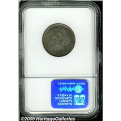 <B>1857-S 25C MS64 NGC.</B></I> With a mintage of 82,000 pieces, the 1857-S is scarce in all grades. AU coins are quite difficult but can occasionally be found with patience. Mint State pieces, on the other hand, are quite rare. Indeed, our records indicate that only 18 Mint State examples have been for sale by the major auction houses in the past 15 or so years. In MS64, the grade of the specimen offered in this lot, NGC and PCGS combined have certified a mere five pieces as of February 2005, with only one example graded higher. On this coin, the lustrous surfaces exhibit medium gray-blue toning with faint gold and magenta undertones. A few miniscule but grade-defining marks are seen on Liberty's neck and knees, in the right obverse fields, and in the reverse shield. The design features are well impressed, with no areas of noticeable weakness. Population: 3 in 64, 1 finer (2/05).