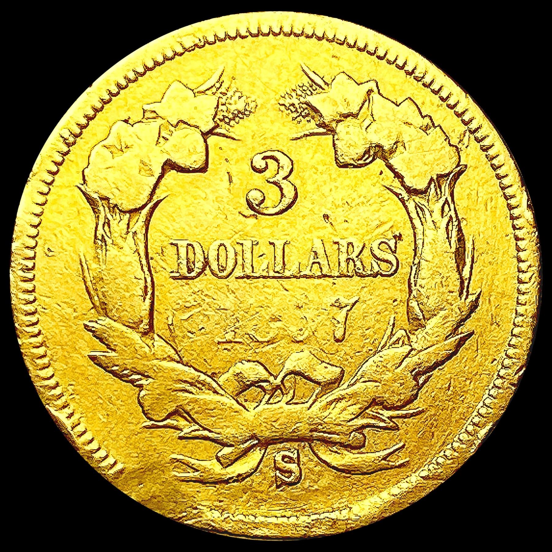 1857-S $3 Gold Piece NICELY CIRCULATED