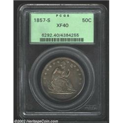 1857-S 50C XF40 PCGS. A pleasing representative that has dusky lilac color and surprisingly bold det
