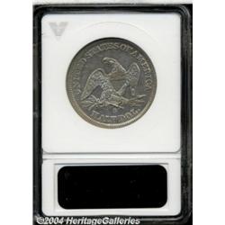 <B>1857-S<50C> XF45 ANACS.</B></I> A relatively scarce issue, this example shows mottled olive-gray toning on the obverse, with an even light-gray reverse. The design elements are well impressed, with sharp resultant detail on the main devices. A few light marks, none serious, are noted on each side.<BR><I>From The Professor Wayne Newman Palmer Collection, Part One.</B></I> <BR><BR><B>Important notice:</B> Heritage usually auctions material at the rate of 200-250 lots per hour. On some occasions eBay Live bid software or the Internet may not be able to keep up with the pace of the auction. We recommend placing a realistic absentee bid now as insurance to avoid disappointment. Occasionally the auctioneer may eliminate or reject an eBay Live bid, and the auctioneer may also reopen a lot after the close of the eBay live bidding (usually because we missed an audience bid), and may reject your bid even if it shows you as the winning bidder. By bidding via eBay Live, you agree that Heritage may award the lot to another bidder at its sole discretion under the circumstances described above or any other reasonable circumstances. Since eBay bids are not shown to us until we open the lot on the floor, we treat those bids just like floor bids. In most cases the floor responds before the eBay bid is presented to us, due to Internet lag time, so for consistency we have made it a policy that floor bids are always considered first over tie eBay live bids. Also please note that all Heritage lots purchased through eBay Live carry a 20% Buyer's Premium. Please make sure you read the Terms and Conditions before you bid. </span></font></tr></table></td></tr></table>