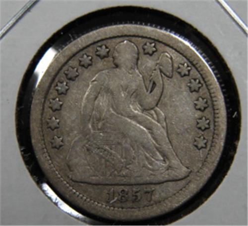1857 SEATED DIME. Fine.