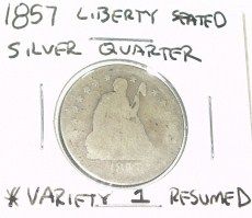 1857 SEATED LIBERTY SILVER QUARTER DOLLAR VARIETY 1 RESUMED!! ***Coin & Currency Grades, Conditions and Values are not Northern Colorado Estate Liquidators Responsibilty. Grades, Condition and Values are determined by Consigner(s) & Buyers ONLY***