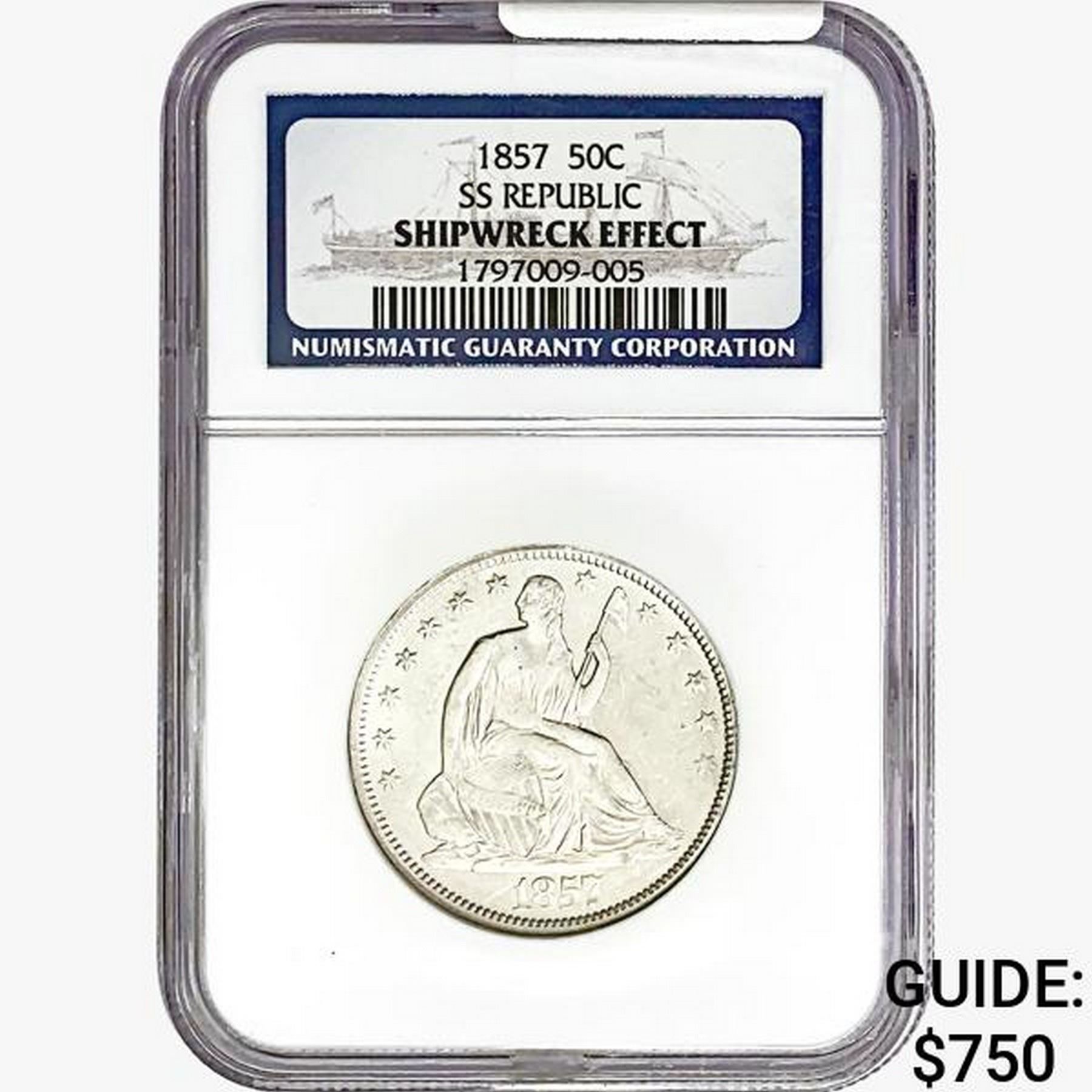 1857 Seated Lib. 50C NGC Shipwreck Effect SS REP.