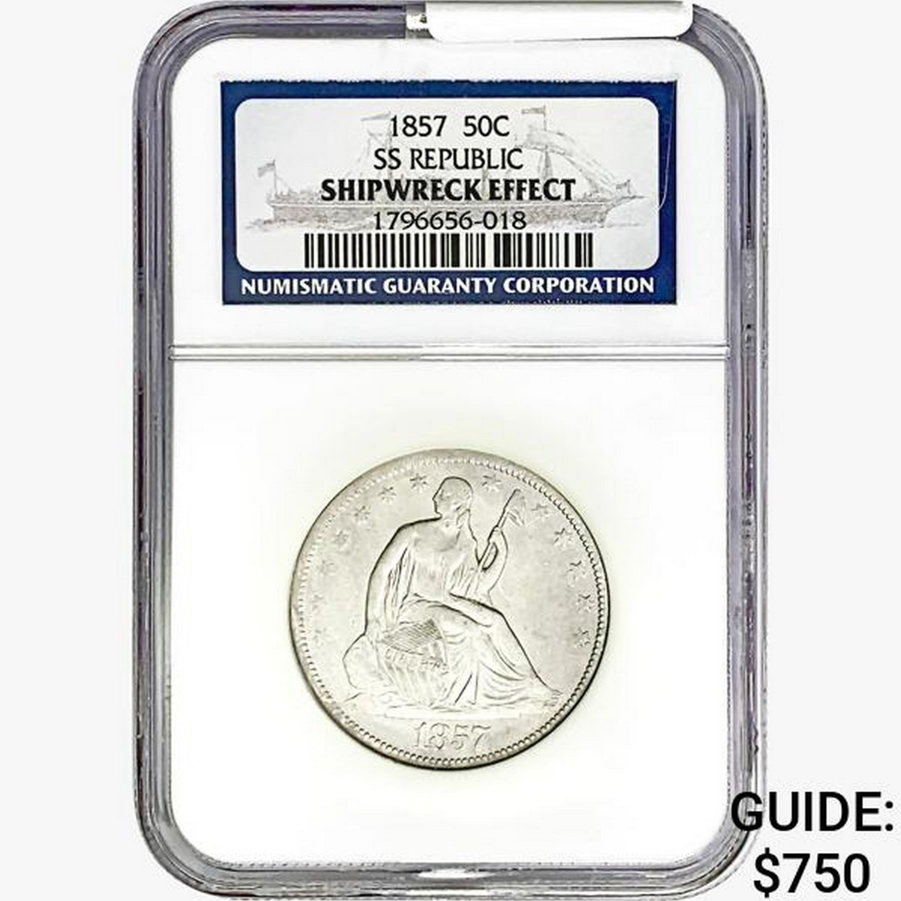 1857 Seated Lib. 50C NGC Shipwreck Effect SS REP.