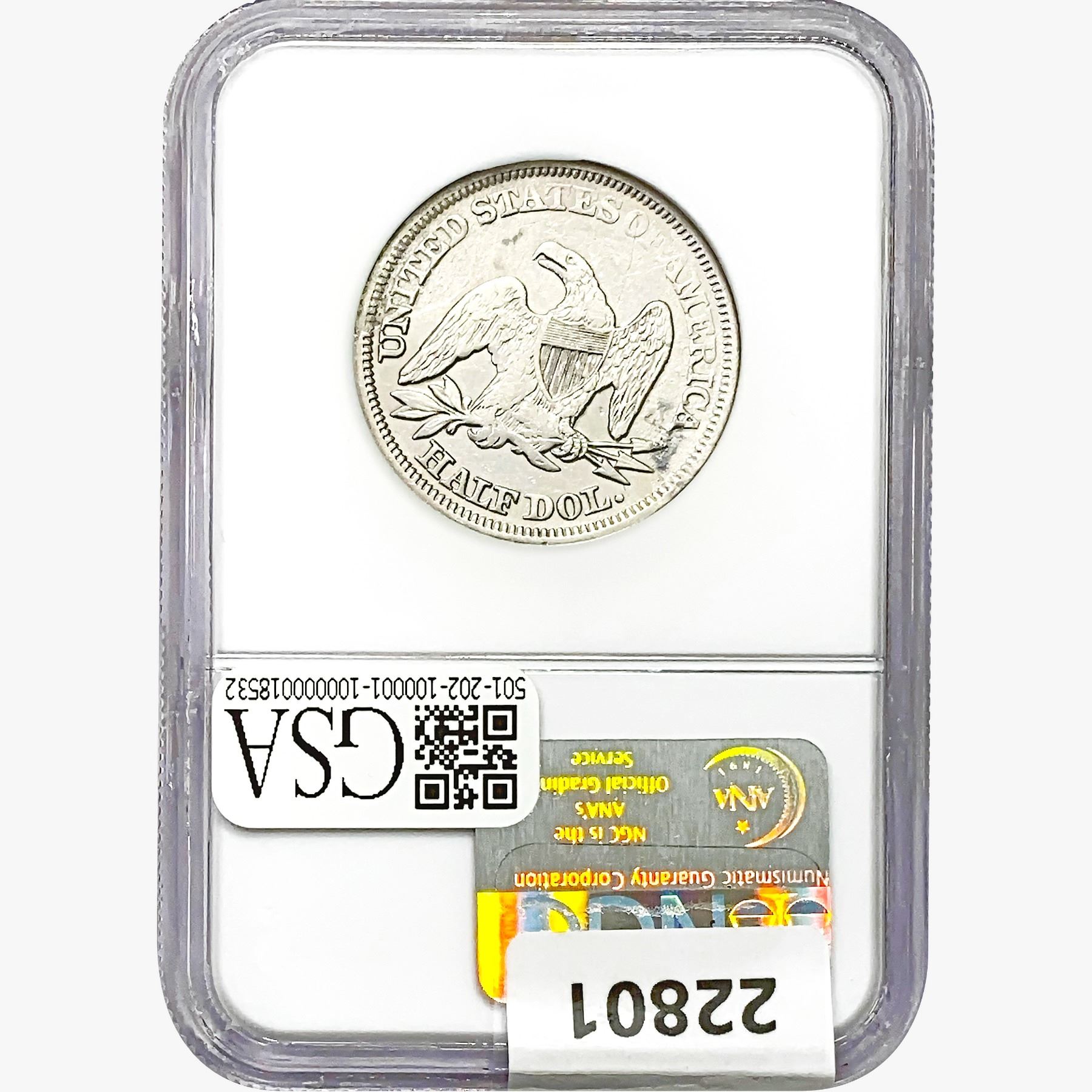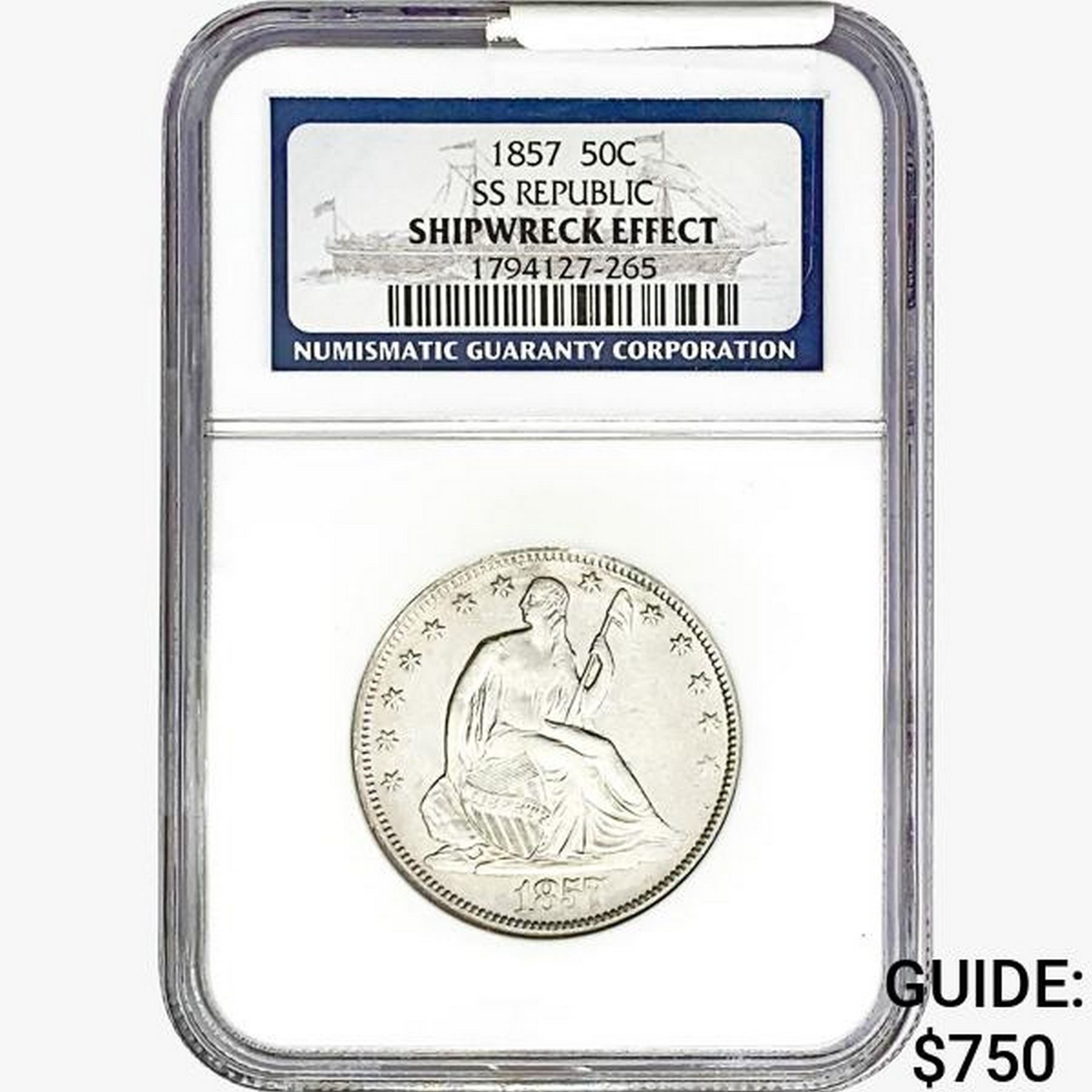 1857 Seated Lib. 50C NGC Shipwreck Effect SS REP.