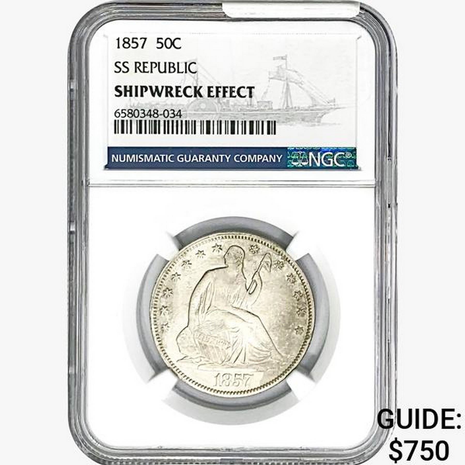 1857 Seated Lib. 50C NGC Shipwreck Effect SS REP.
