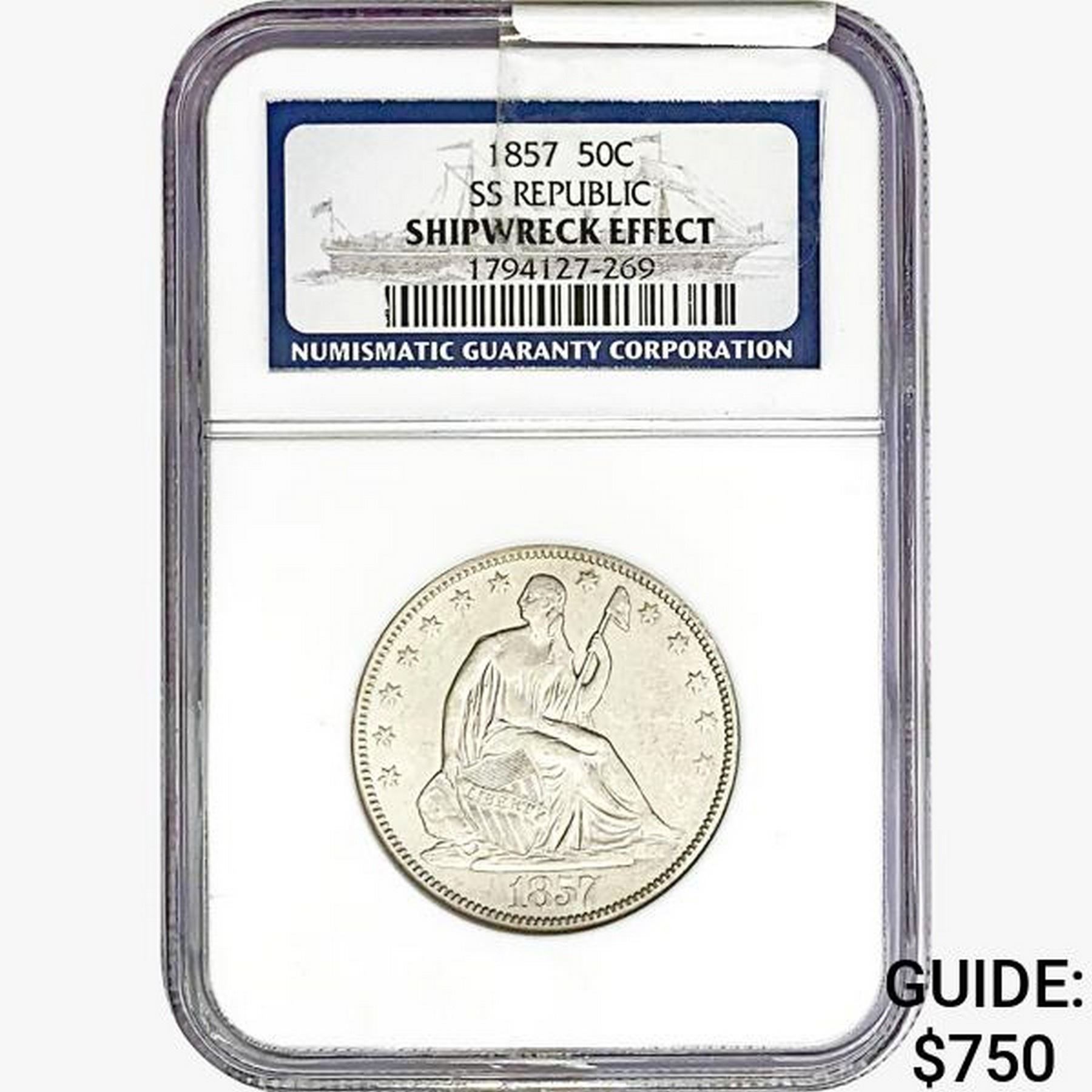 1857 Seated Lib. 50C NGC Shipwreck Effect SS REP.