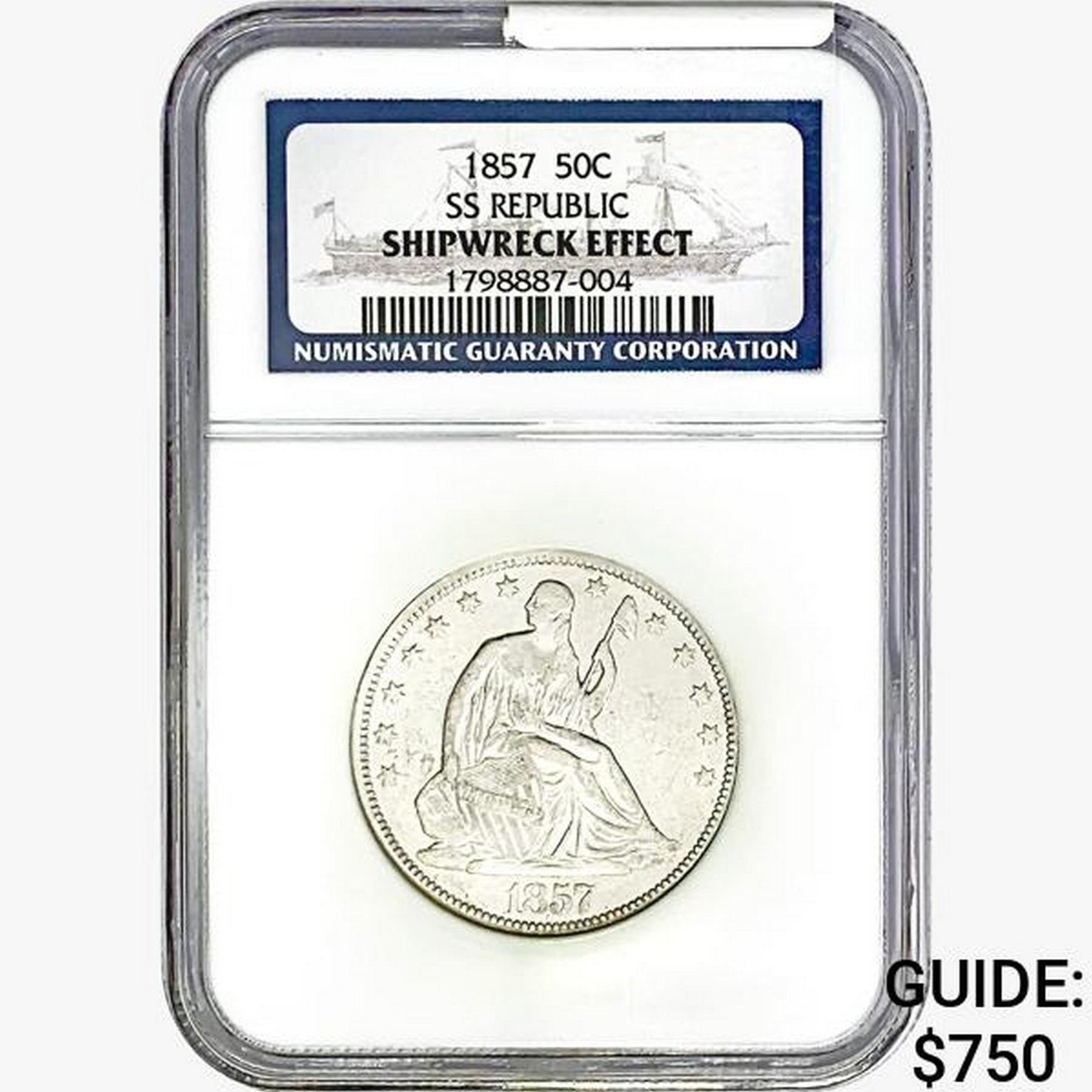 1857 Seated Lib. 50C NGC Shipwreck Effect SS REP.