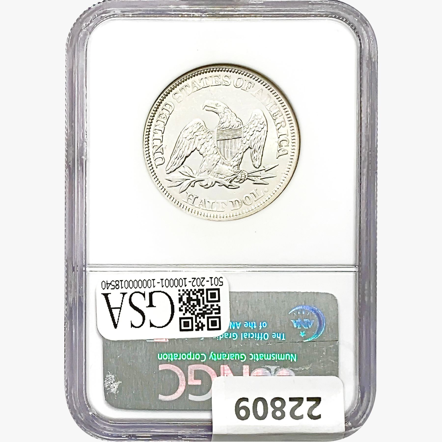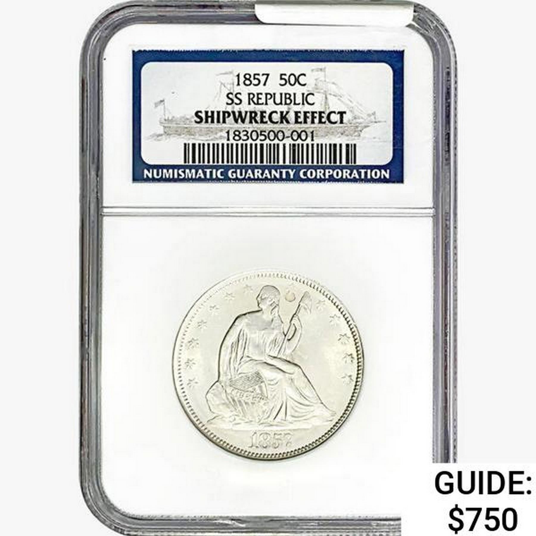 1857 Seated Lib. 50C NGC Shipwreck Effect SS REP.