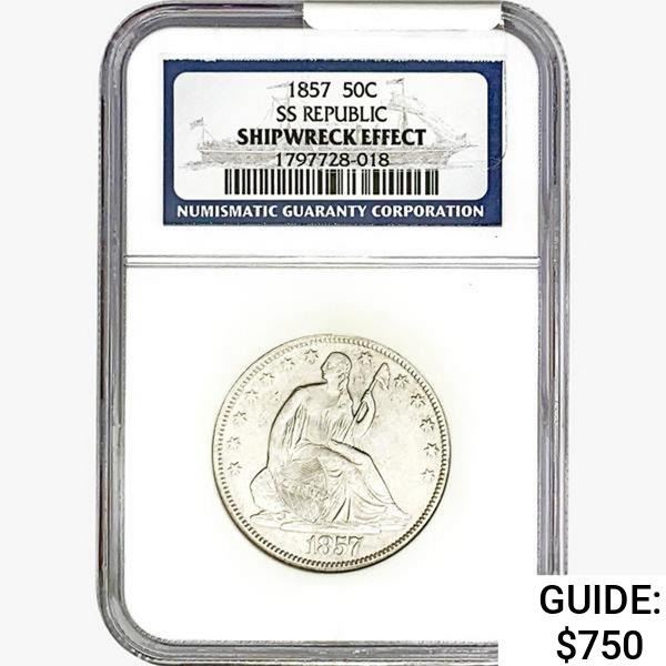 1857 Seated Lib. 50C NGC Shipwreck Effect SS REP.