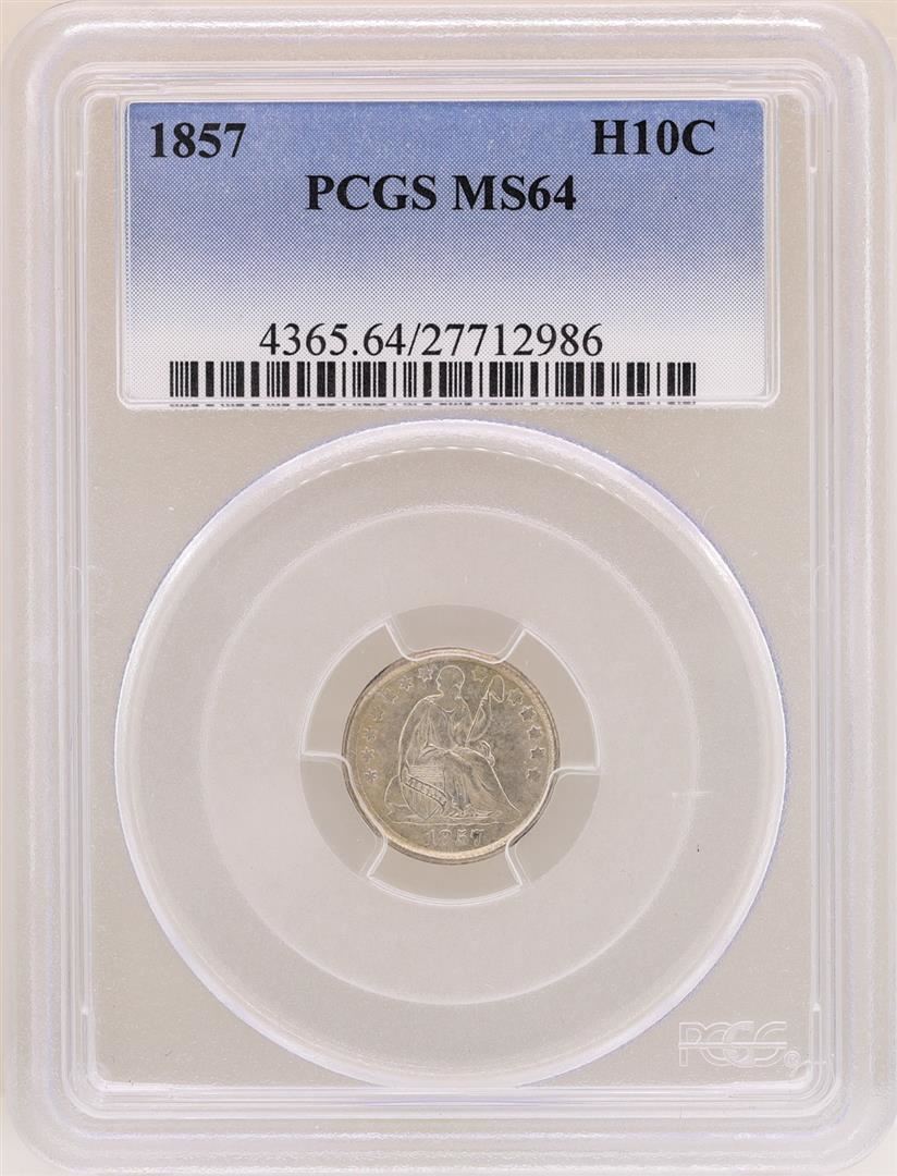One 1857 Seated Liberty Half Dime Coin PCGS MS64. PCGS Certified.