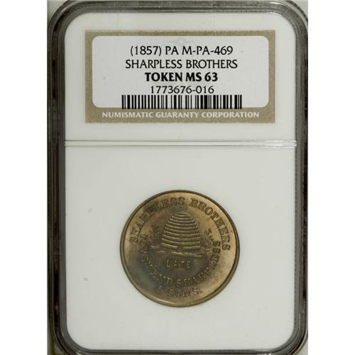 (1857) Sharpless Brothers, Philadelphia, PA, MS63 NGC.