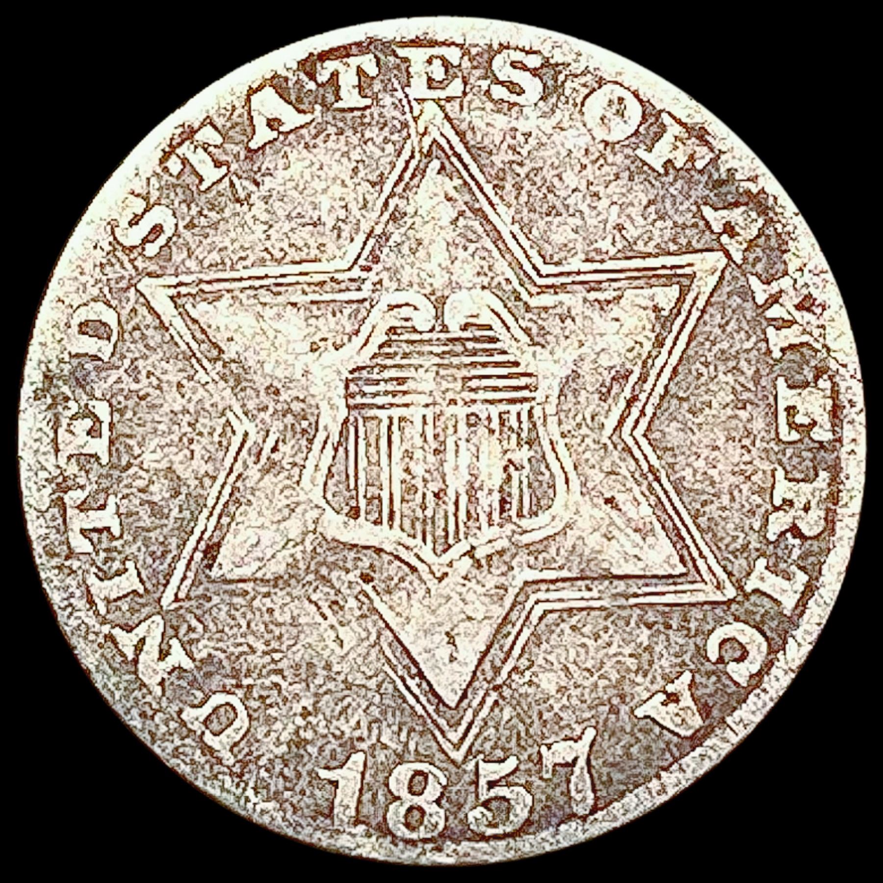 1857 Silver Three Cent LIGHTLY CIRCULATED