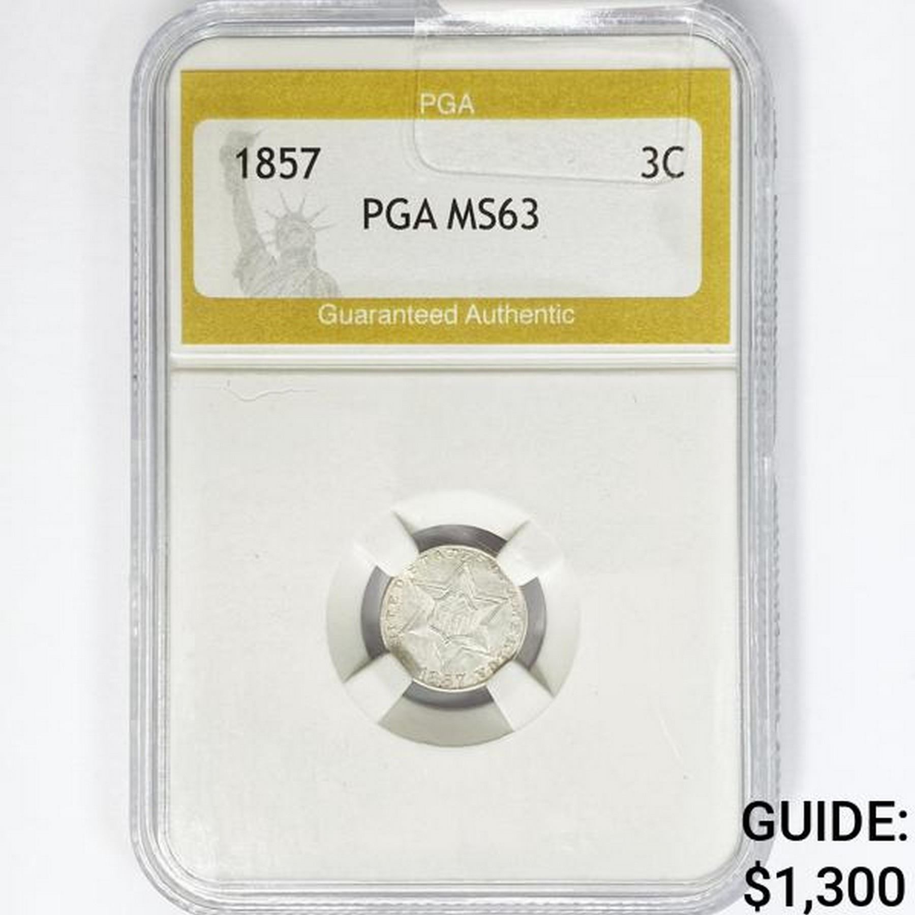1857 Silver Three Cent PGA MS63