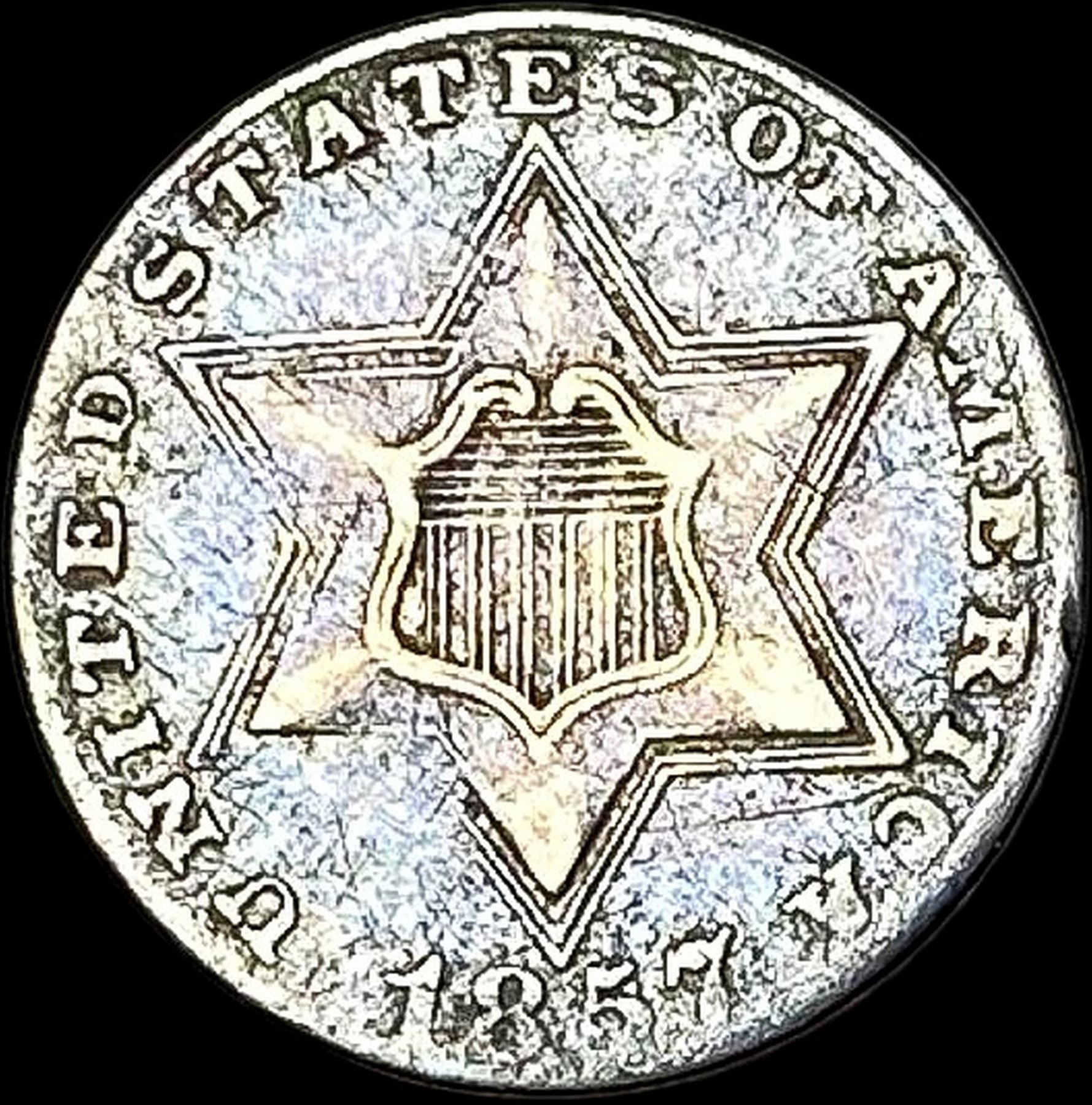 1857 Silver Three-Cent Piece NEARLY UNCIRCULATED