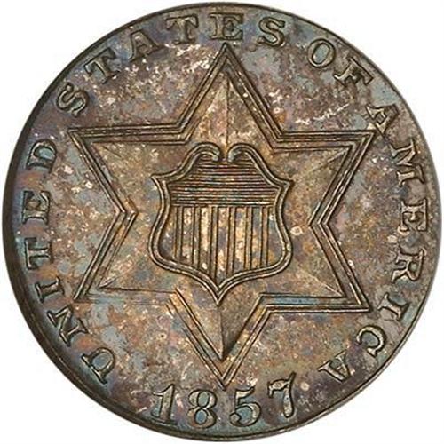 The 1857 is the final Proof issue before the Mint dramatically stepped up production in 1858. It is estimated that somewhere around 75 pieces were originally struck but Breen's estimate (from 1977) suggests that perhaps only 18-20 pieces are now extant. This Gem is deeply toned with russet and gray patina over each side. Close examination with a magnifier shows only a few hairlines. Nicely reflective fields; a gem.