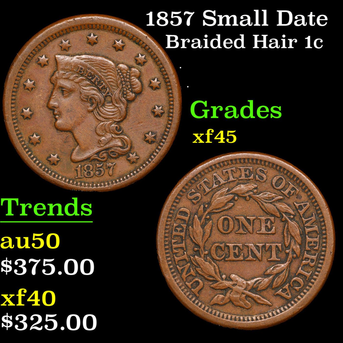 1857 Small Date Braided Hair Large Cent 1c Grades xf+.