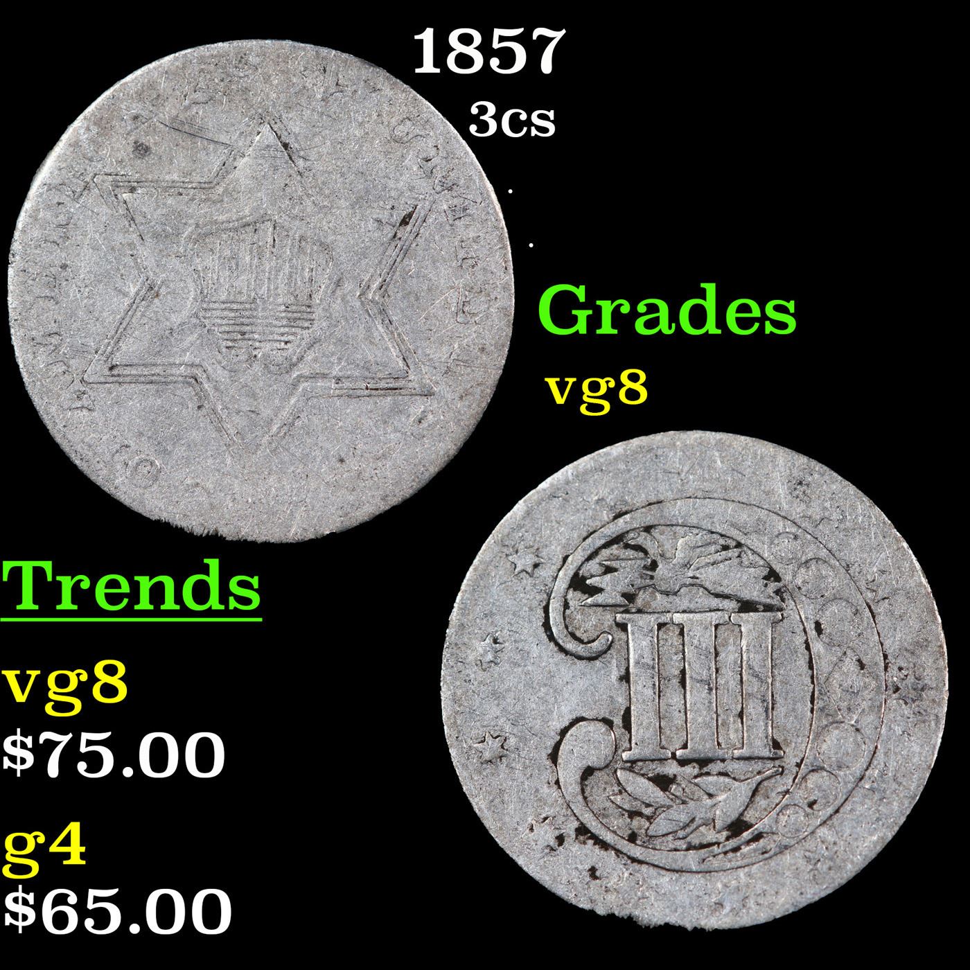 1857 Three Cent Silver 3cs Grades vg, very good.
