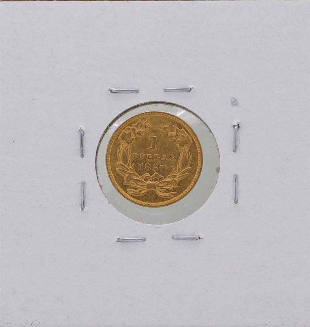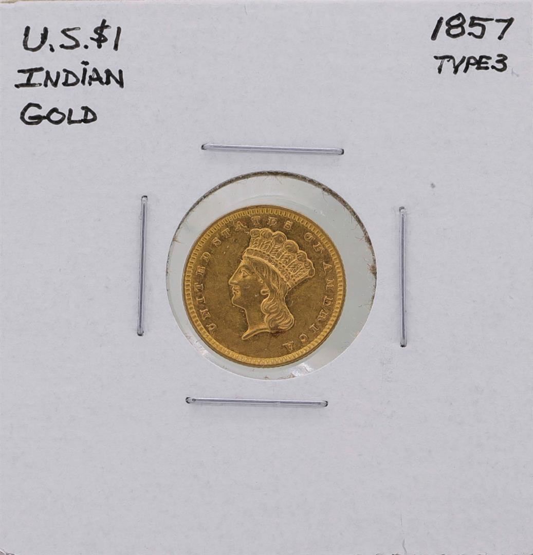 One 1857 Type 3 $1 Indian Princess Head Gold Coin.