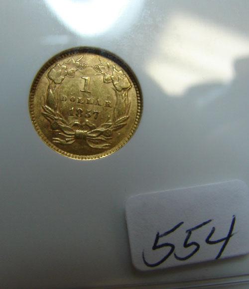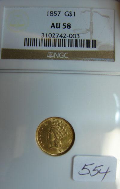 1857 Type III $1.00 Liberty Head Gold Coin NGC AU58