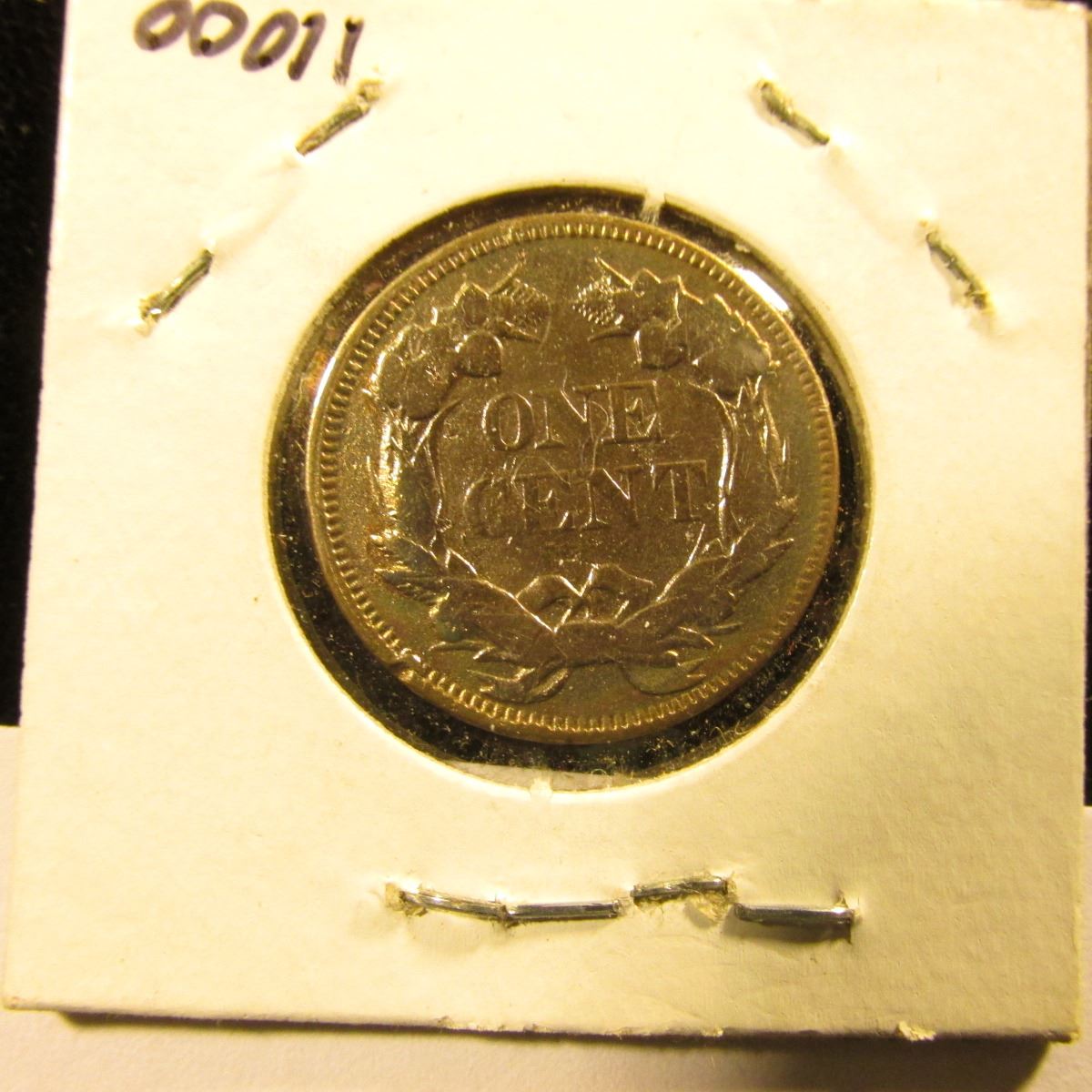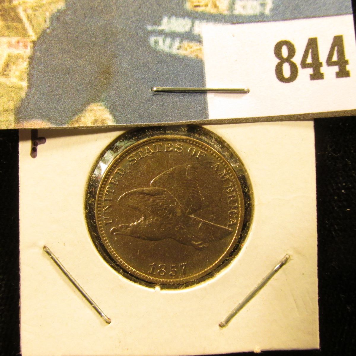 1857 U.S. Flying Eagle Cent, Fine details, heavily cleaned.