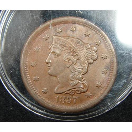 1857 U.S. LARGE CENT. Graded by ANACS. MS 61.