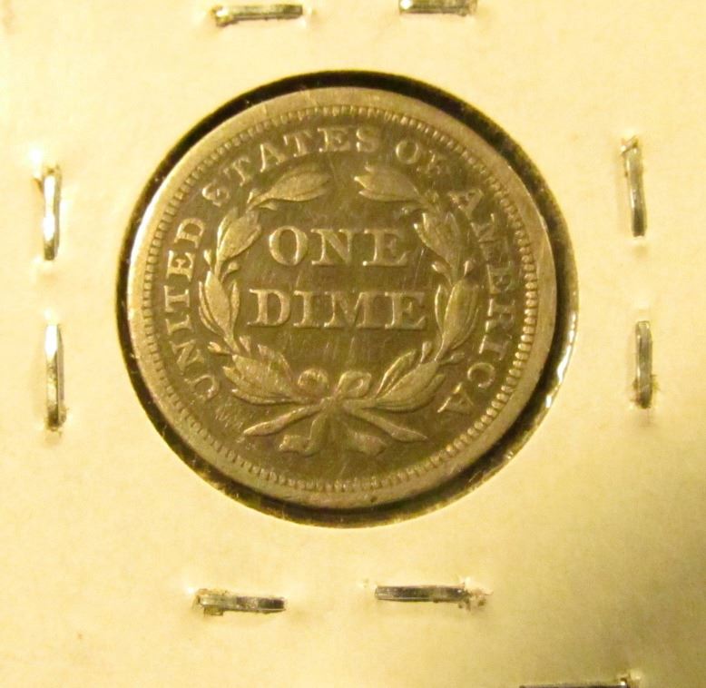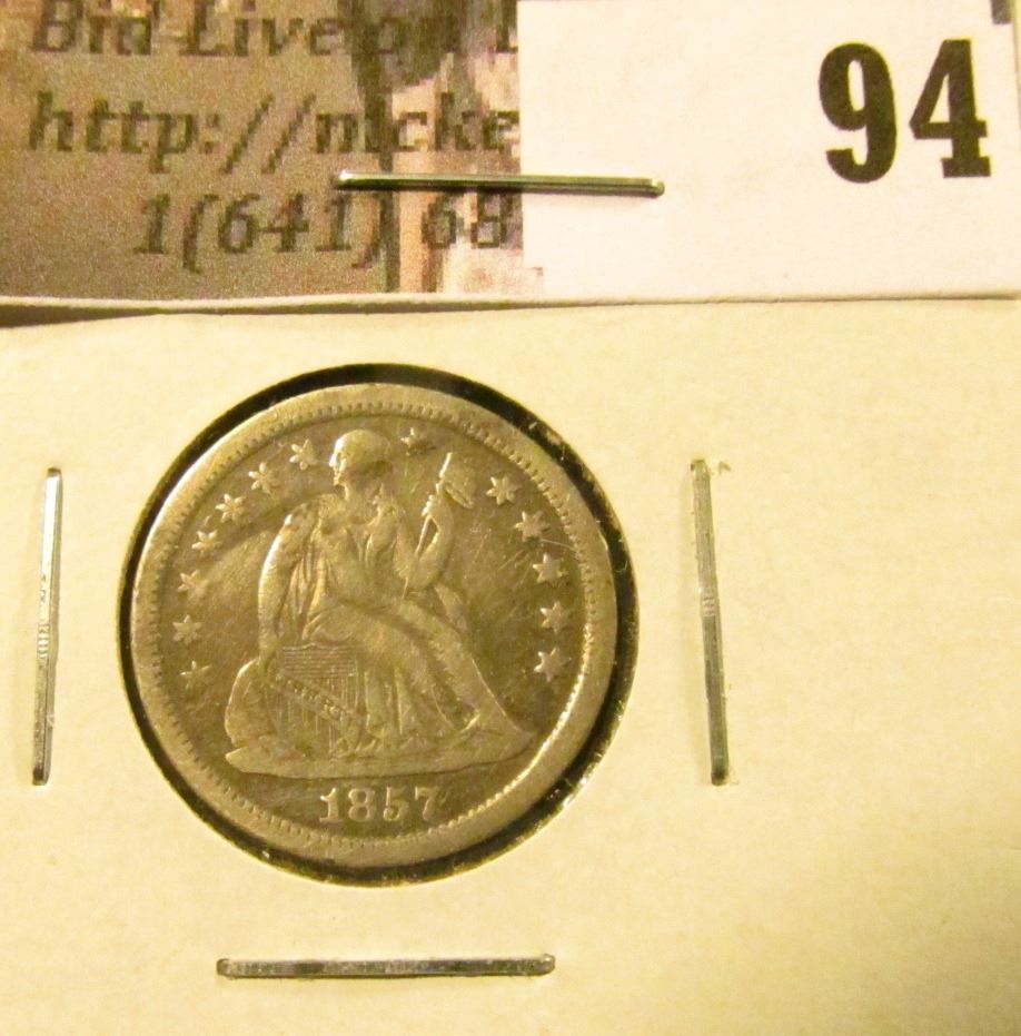 1857 U.S. Seated Liberty Dime, EF with a mark.