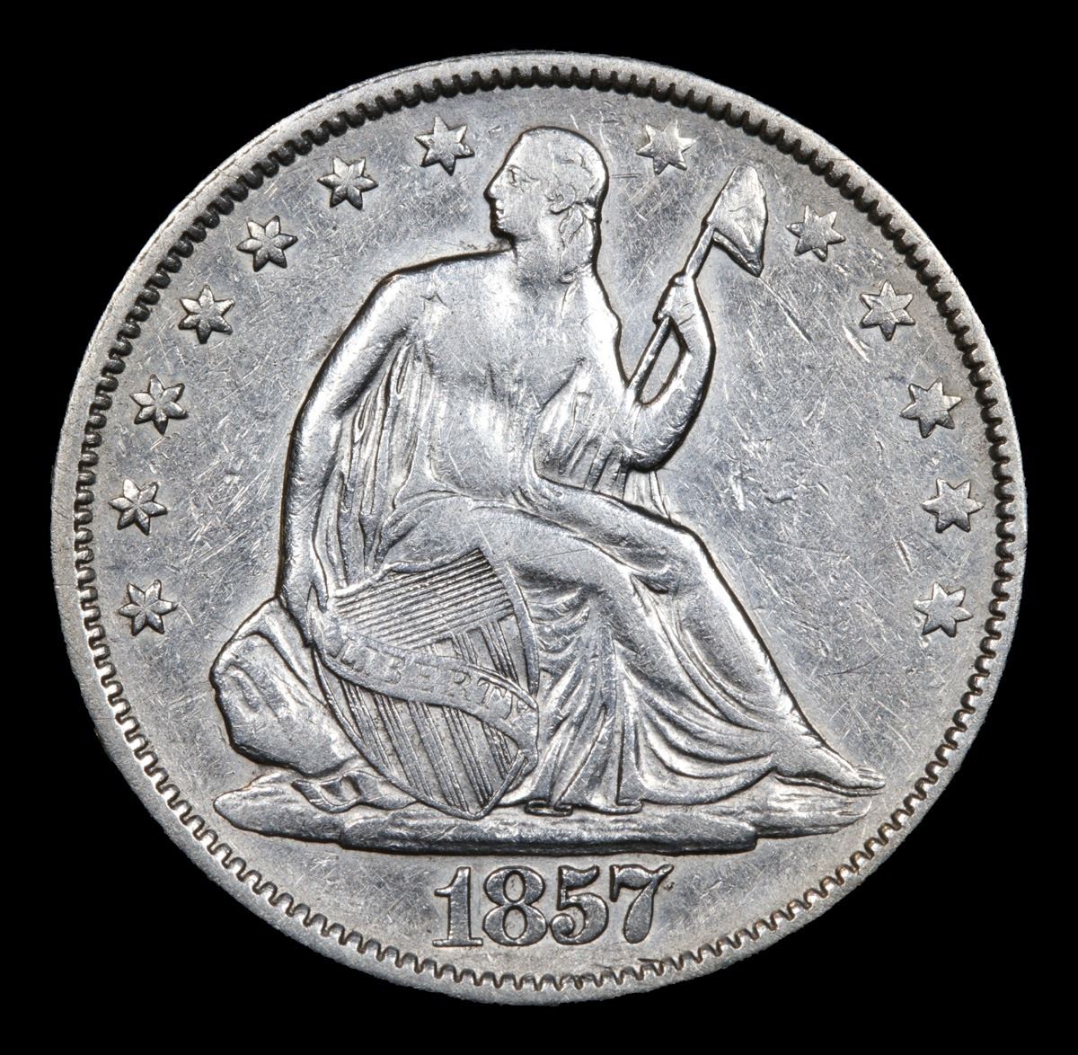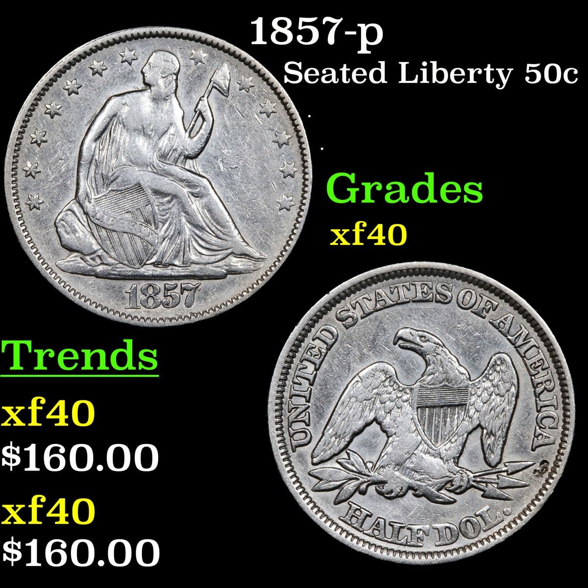 1857-p . . Seated Half Dollar 50c Grades xf.