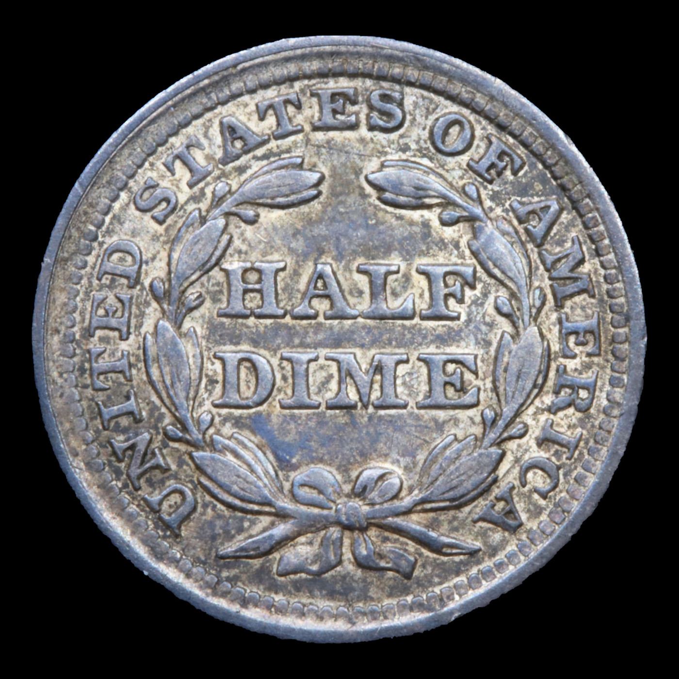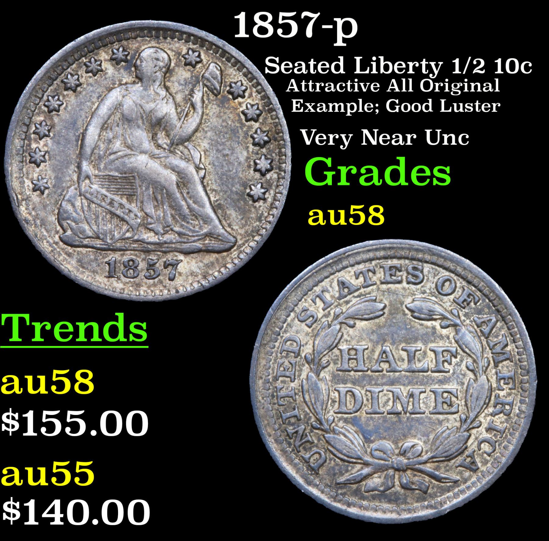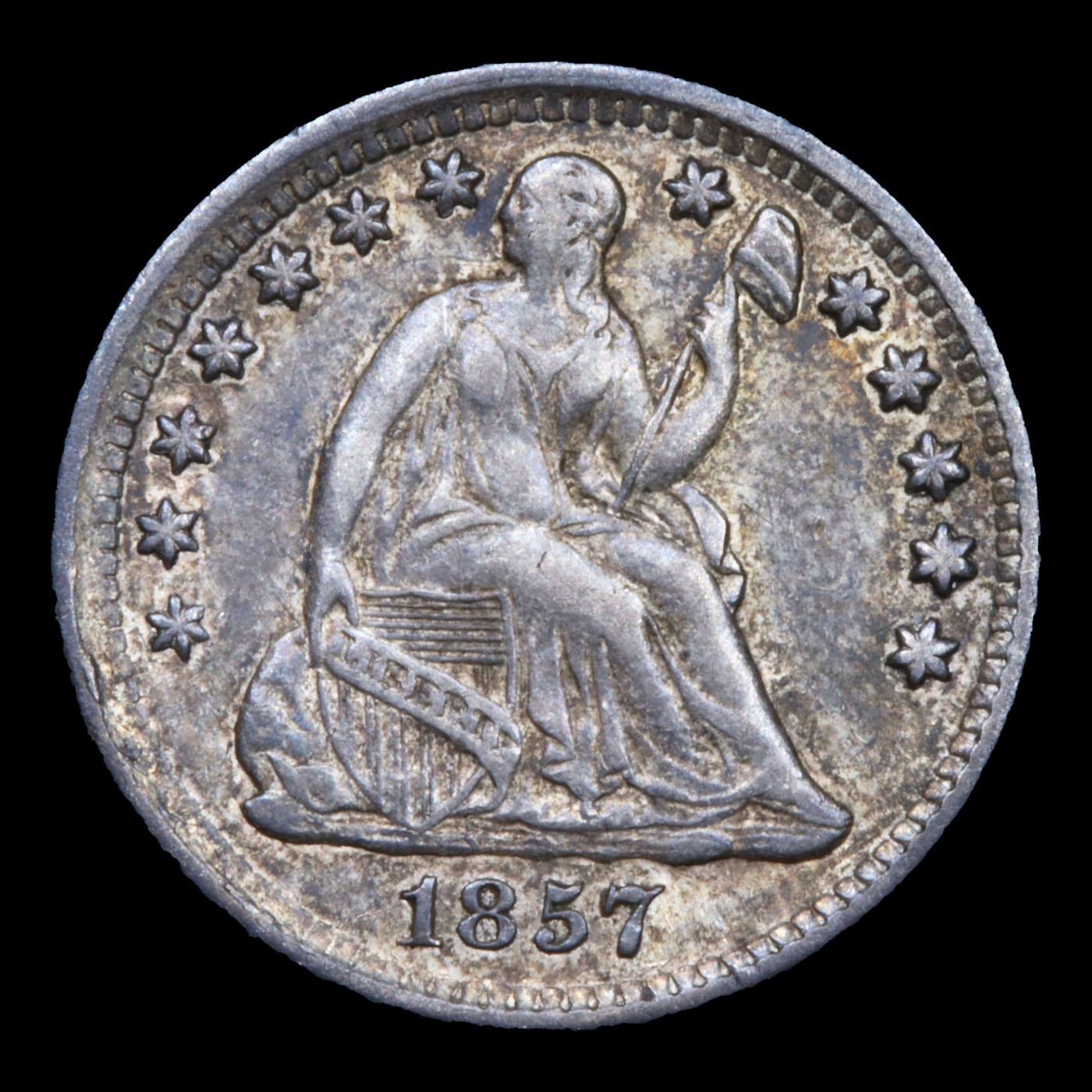1857-p Seated Liberty Half Dime 1/2 10c Grades Choice AU/BU Slider.