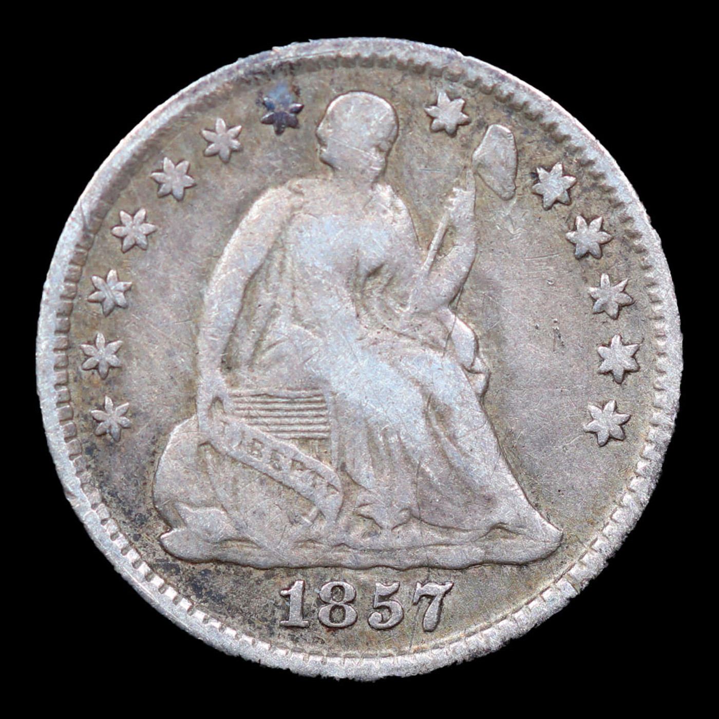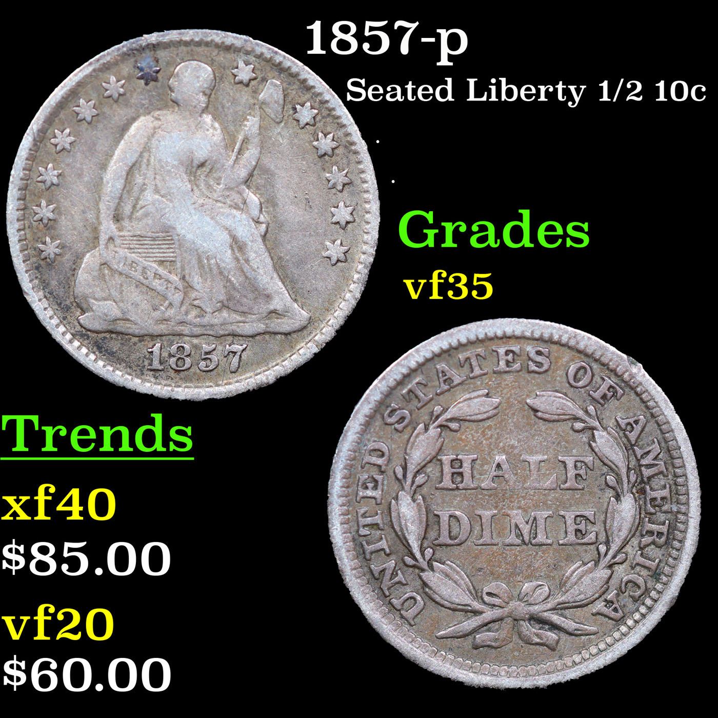 1857-p Seated Liberty Half Dime 1/2 10c Grades vf++.