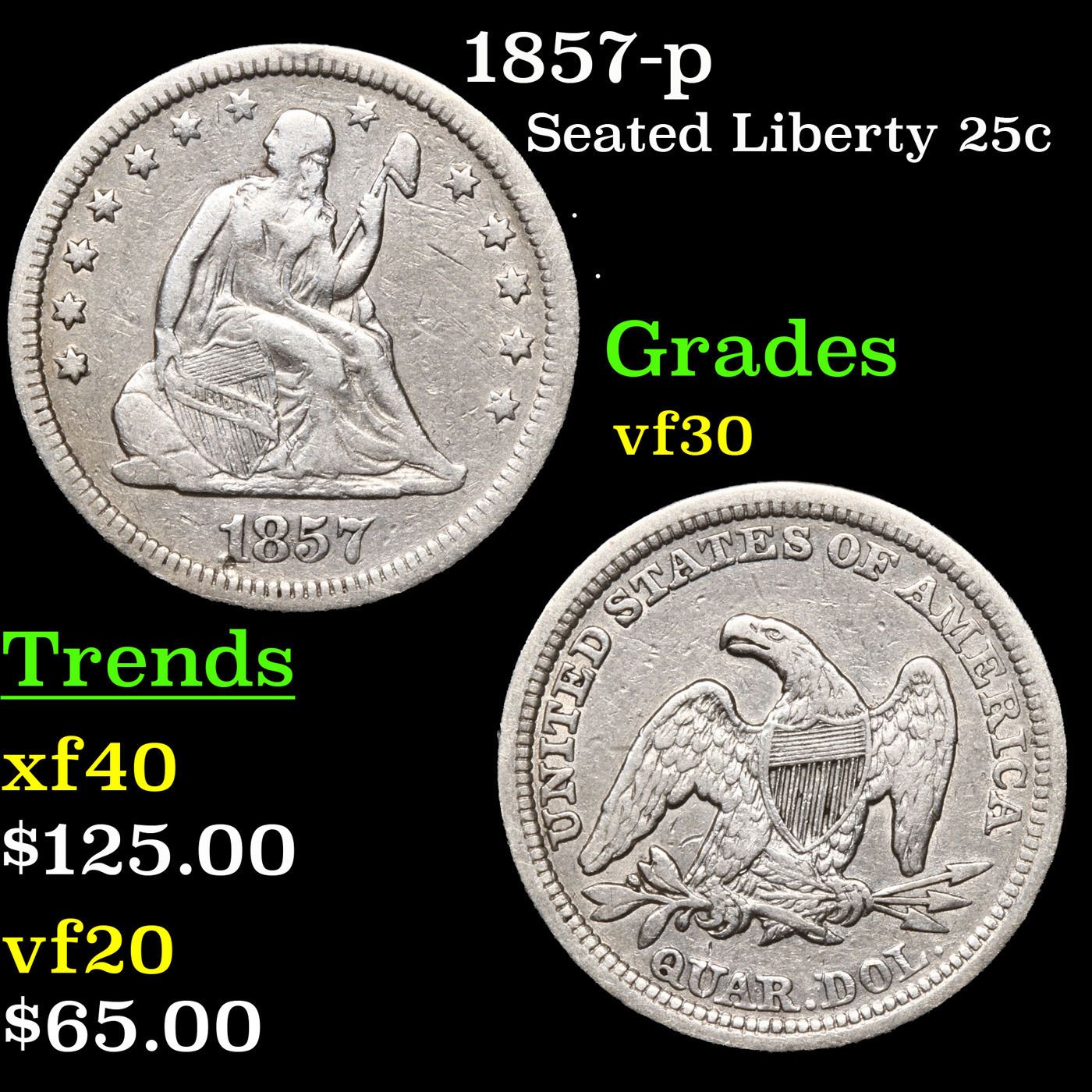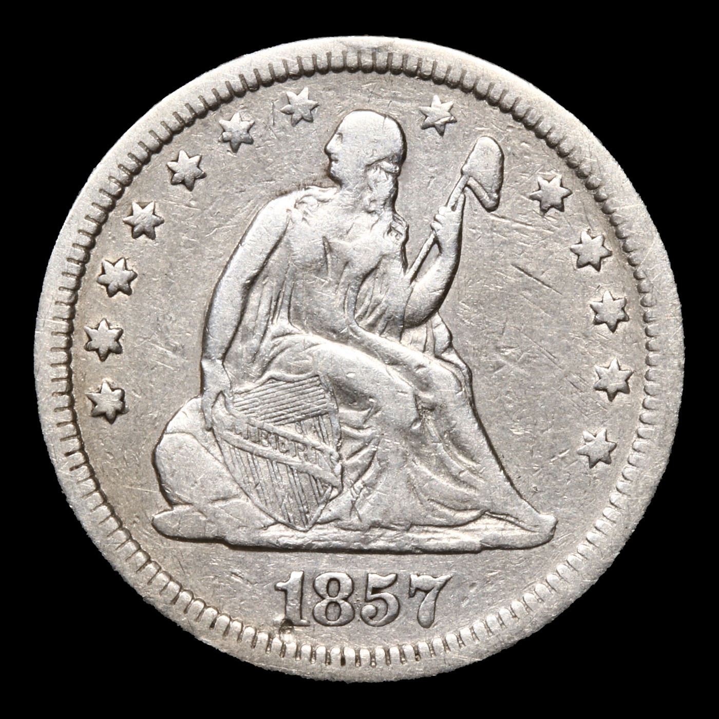 1857-p Seated Liberty Quarter 25c Grades vf++.