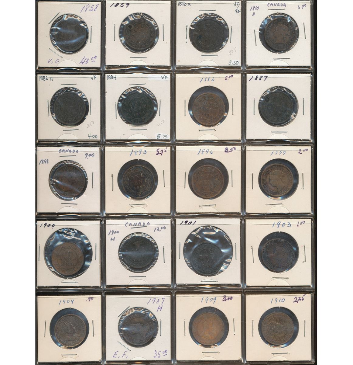 1858 1¢ - 1990 Partial Date Set; includes key 1858, 1900, 1907H & 1923. Lot of 100 coins Good to UNC some with problems.