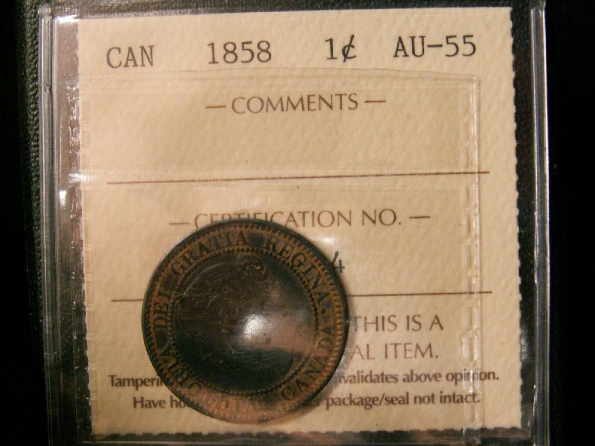1858 1¢ ICCS AU55. A nice chocolate brown.