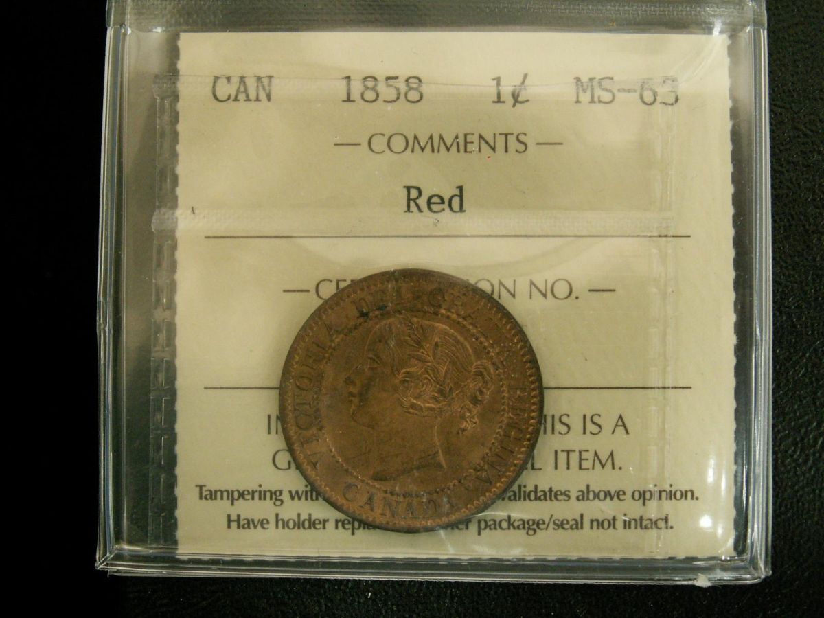 1858 1¢ ICCS MS63 Red, nice lustrous example
