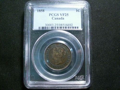 1858 1¢ PCGS VF25. Clean damage free example.
