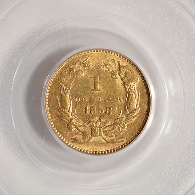 One 1858 $1 Princess Head Type III Gold Coin PCGS AU58.