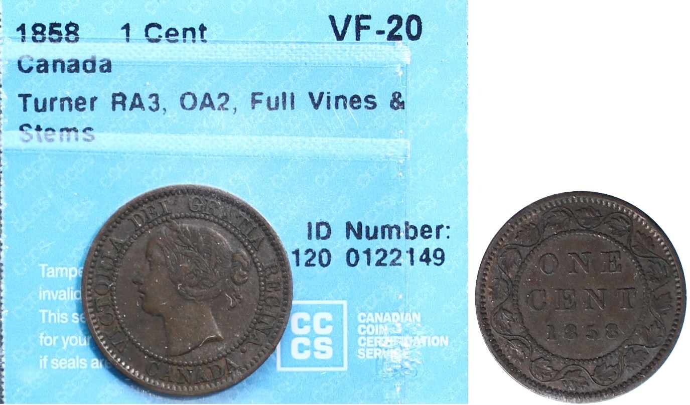 1858 1¢ Turner RA3, OA2, Full Vines & Stems CCCS Very Fine-20