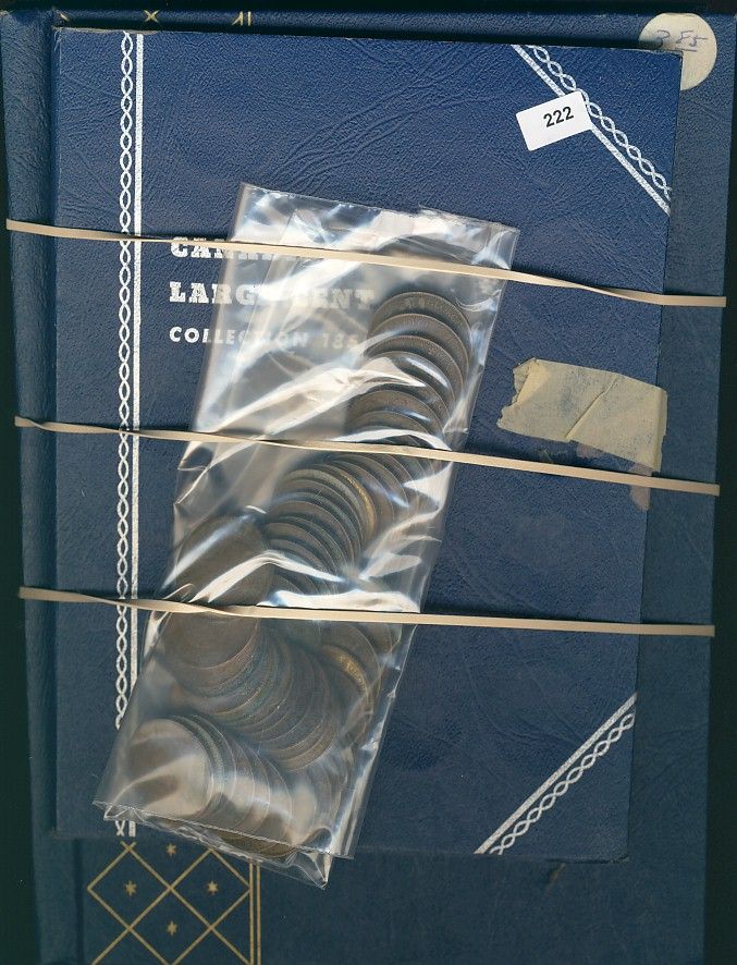 1858 1¢ to 1920 Lg. Lot includes two partial sets in blue Whitman holders. Includes 1858 & 1907H as key date no 1859 or 1891 types in set. Good to EF with 1920 original BU. Also includes 50+ Lg cents mainly 1911+ some with problems and issues. 100+ coins some with issues.