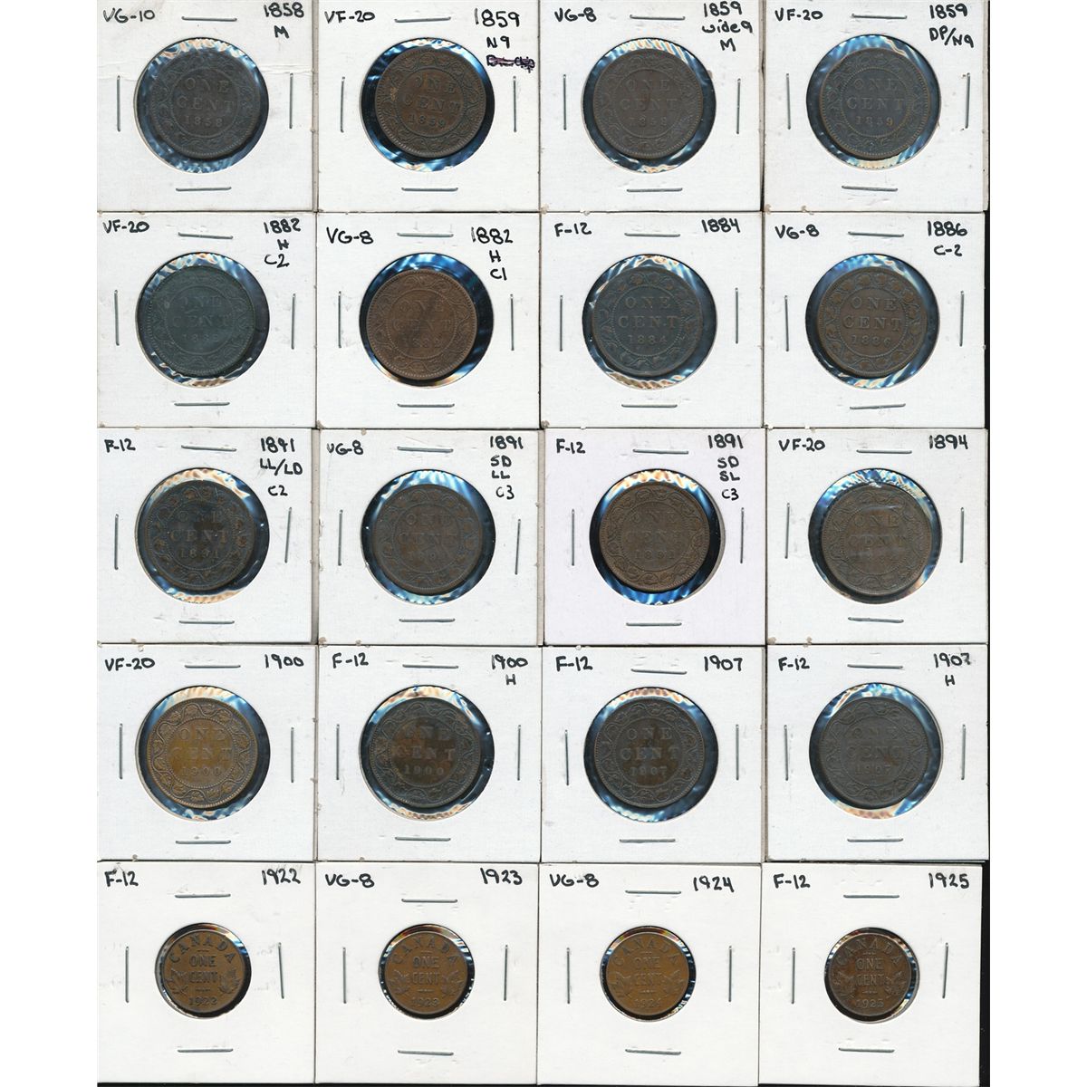 1858 1¢ to 1931 Almost Complete Date. Excludes Brass, DP#1 & #2 issues. All others included. 1858, 1859 Wide 9/8, 1859 DP (varieties x 2), 1891 SL SD, SL LD, 1900, 1907H & 1922-1925. A nice lot VG to EF for the most part.